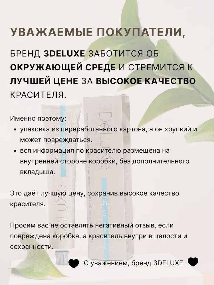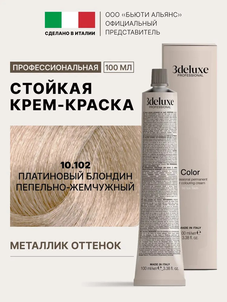 3Deluxe professional Крем-краска для волос, оттенок 10.102 Платиновый блондин пепельно-жемчужный