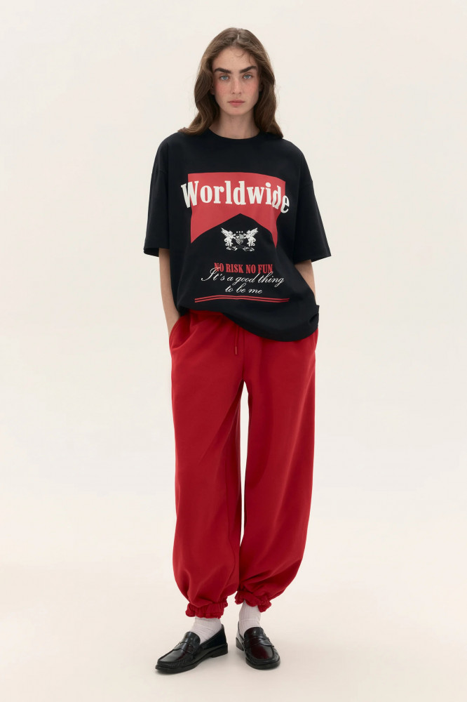 Женская футболка свободного кроя oversize из мягкого и дышащего 100% хлопка средней плотности. Удлиненные рукава до локтя со спущенной линией плеча. Круглый вырез горловины без воротника. Прямой нижний край без разрезов. Хлопковая футболка с принтом из новой осенней коллекции. Сочетай хлопковую футболку с любимым низом и создавай расслабленные и стильные кэжуал-луки, в которых тебе будет максимально удобно. Носи футболку с принтом отдельно или используй в качестве основы для трендовых многослойных луков.