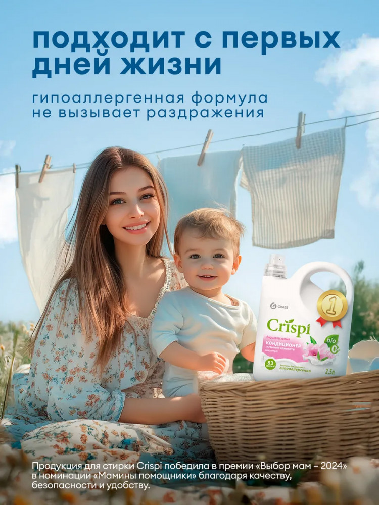 Кондиционер-ополаскиватель для стирки Crispi «Гармония нежности» — это незаменимое средство для ухода за вашим бельем. Созданный с учетом всех современных требований к качеству и безопасности, этот продукт не только делает вашу одежду мягкой и приятной на ощупь, но и придает ей свежий, нежный аромат, который сохраняется надолго. Уникальная формула кондиционера-ополаскивателя специально разработана для деликатного ухода за тканями любого типа, включая детское белье, что делает его идеальным выбором для семей с маленькими детьми. Кондиционер CRISPI эффективно удаляет остатки моющего средства, предотвращает образование статического электричества и облегчает глажку, что значительно упрощает процесс ухода за вашими вещами.