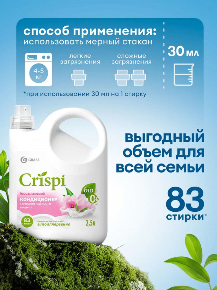 Grass Crispi «Гармония нежности» оказывает бережное воздействие на волокна ткани, обволакивая их тончайшей защитной пленкой, что предотвращает износ и продлевает срок службы текстильных изделий. Продукт легко растворяется в воде и не оставляет следов на одежде, что делает его отличным выбором для жирных стирок. Если вы ищете средство, которое подарит вашим вещам неповторимую мягкость и свежесть, обеспечит деликатный уход и защиту, кондиционер-ополаскиватель для белья CRISPI «Гармония нежности» станет вашим незаменимым помощником в ежедневных домашних хлопотах.