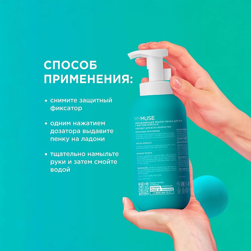 Grass Мыло-пенка для рук увлажняющее с маслом кокоса