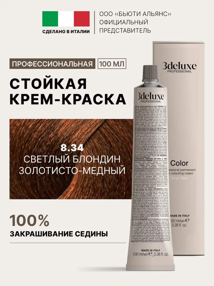 3Deluxe professional Крем-краска для волос, оттенок 8.34 Светлый блондин золотисто-медный