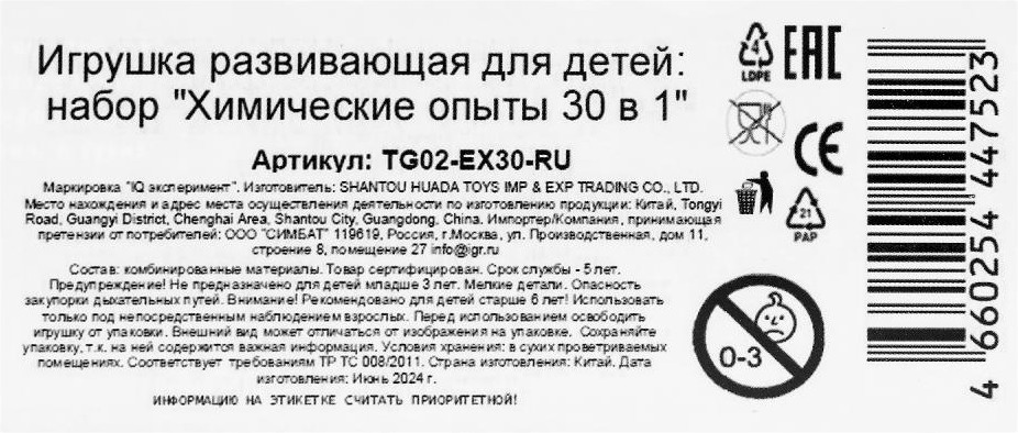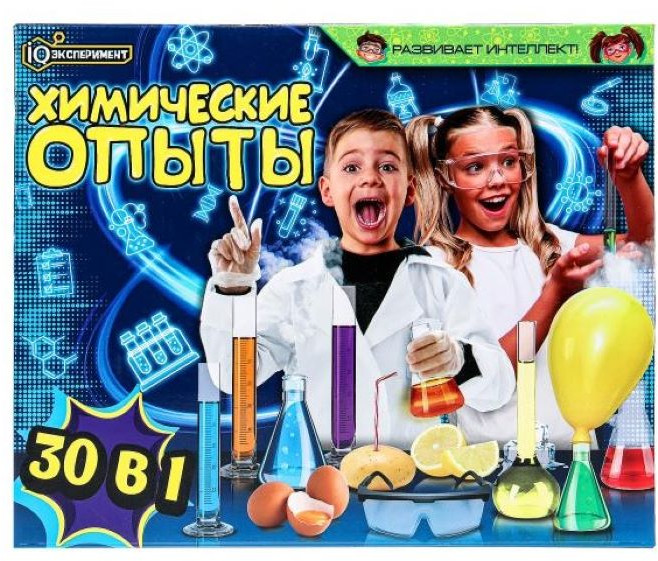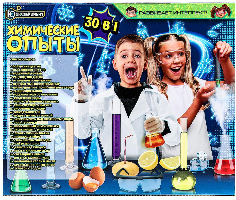 Набор «Химические опыты 30 в 1» ТМ «IQ Эксперимент» станет замечательным подарком для маленького любознайки. С помощью набора компонентов ребёнок сможет самостоятельно провести множество научных опытов. В ходе игры с набором юный химик поймёт, как прекрасна и удивительна наука, обнаружит в себе ранее скрытые способности и навыки, почувствовав себя взрослым учёным. Игра с набором ТМ «Играем вместе» способствует изучению окружающего мира и развивает: логическое мышление, творческие способности, интеллект, фантазию и моторику.