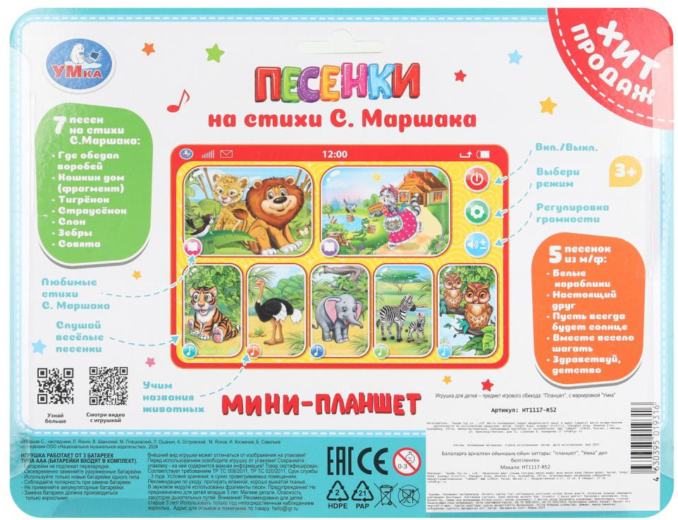 УМка Мини-планшет обучающий «Песенки на стихи С. Маршака»новинка -35%