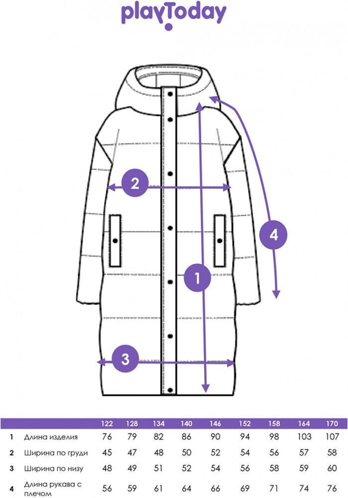 Пальто PlayToday для девочек создано для стильной и комфортной зимы: текстильный материал с полиуретановым покрытием надежно защищает от ветра и влаги, сохраняя тепло и уют даже в холодную погоду. Современный крой и продуманные детали обеспечивают удобство движений и практичность в повседневной носке, а лаконичный дизайн легко сочетается с любым зимним гардеробом. Это пальто станет надежным спутником в морозный сезон, объединяя функциональность, качество и актуальный стиль.