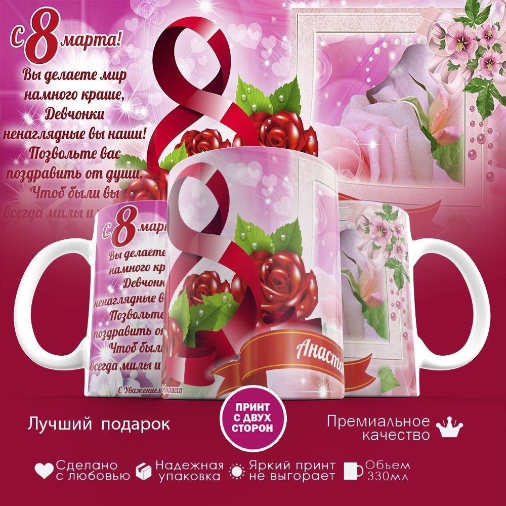 TopPoshiv Кружка с принтом «С 8 Марта Анастасия»новинка -25%