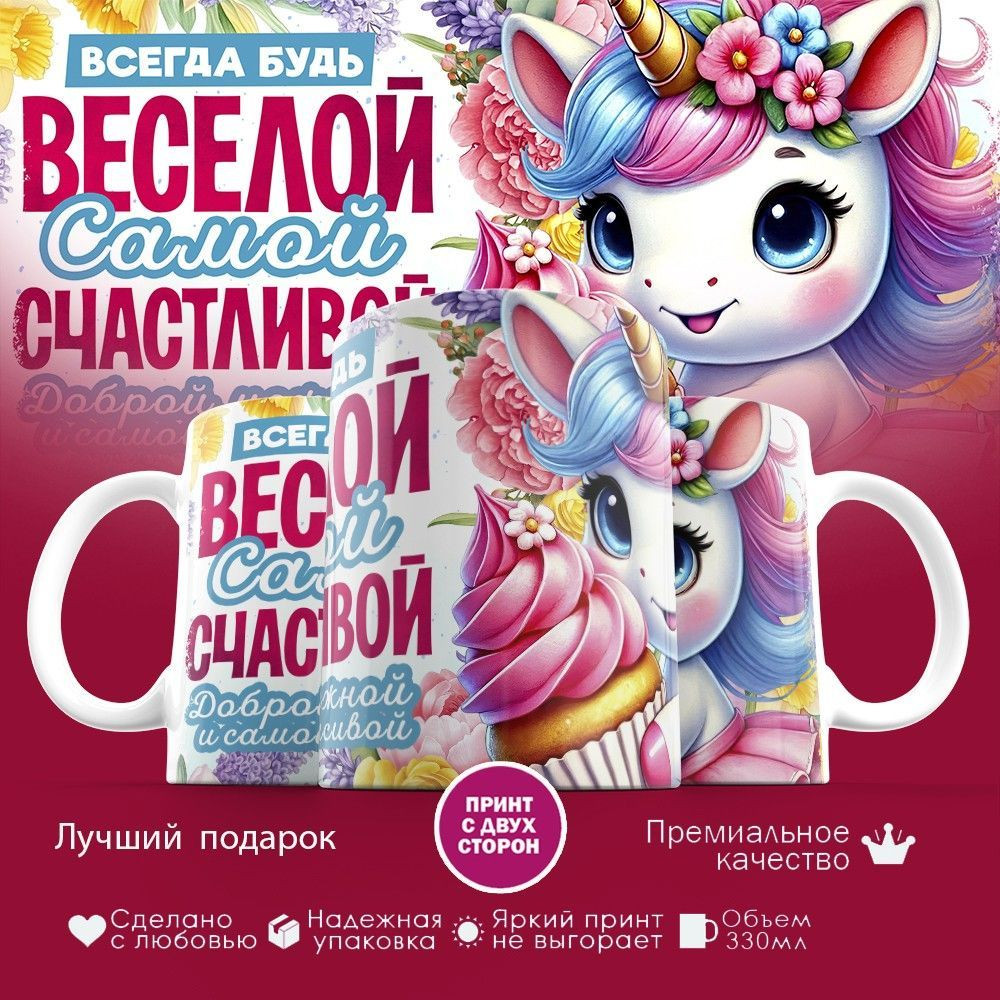 TopPoshiv Кружка с принтом «Всегда будь веселой, самой счастливой»