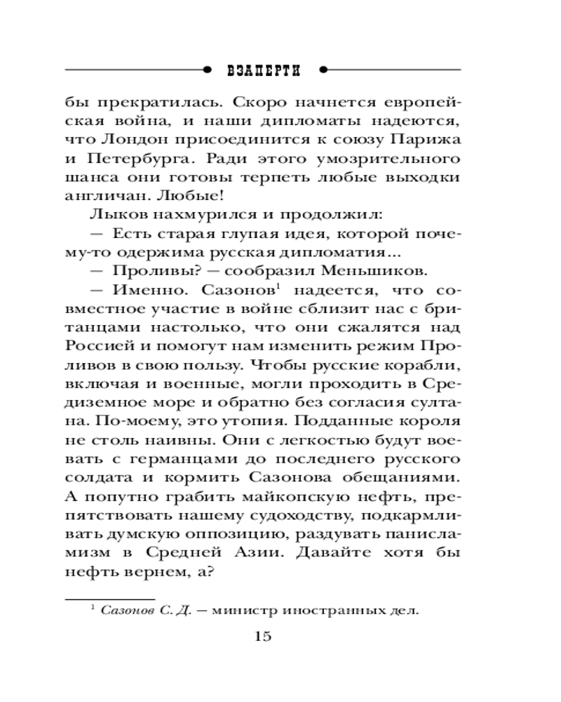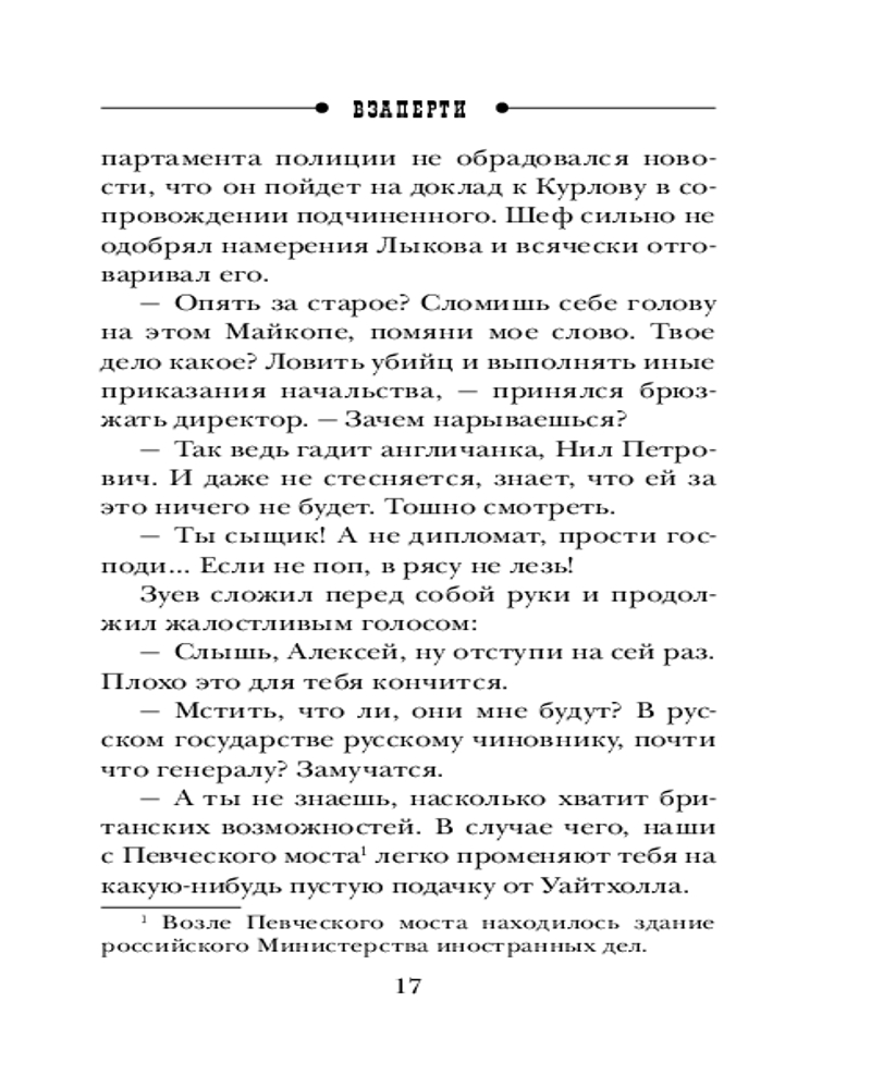Конец 1911 года. Столыпин убит, в МВД появился новый министр Макаров. Он сразу невзлюбил статского советника Лыкова. Макаров — строгий законник, а сыщик часто преступает законы в интересах дела. Тут еще Лыков ввязался не в свое дело, хочет открыть глаза правительству на английские происки по удушению майкопских нефтяных полей. Во время ареста банды Мохова статский советник изрядно помял главаря. Макаров сделал ему жесткий выговор. А через несколько дней сыщик вызвал Мохова на допрос, после которого тот умер в тюрьме. Сокамерники в один голос утверждают, что Лыков сильно избил уголовного, и тот умер от побоев... И не успел сыщик опомниться, как сам оказался за решеткой. Лишенный чинов, орденов и дворянства за то, чего не совершал. Друзья спешно стараются вызволить бывшего статского советника. А между тем в тюрьме много желающих свести с ним счеты...