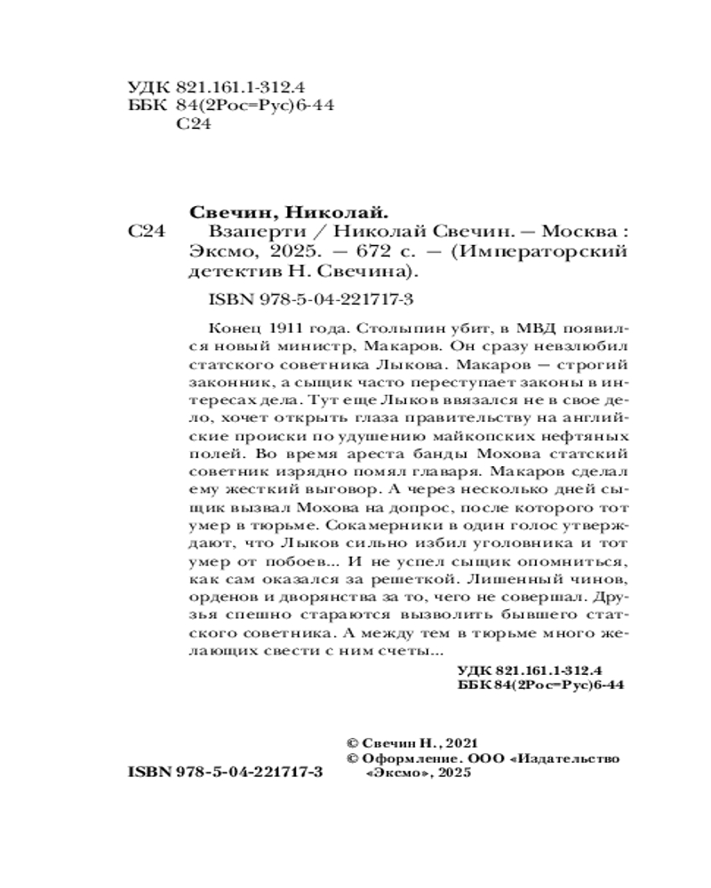 Взаперти | Императорский детектив Н.Свечина (обложка)