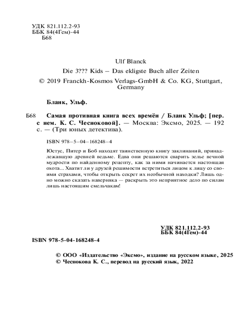 💳 Оплатить за товар можно при получении 🇰🇿 Есть бесплатная доставка по Казахстану от 1 дня 🎁 Копите бонусы с каждой покупки Серия: Три юных детектива Уникальный формат, в котором читателю придется самому разрезать страницы, чтобы узнать продолжение истории! |
