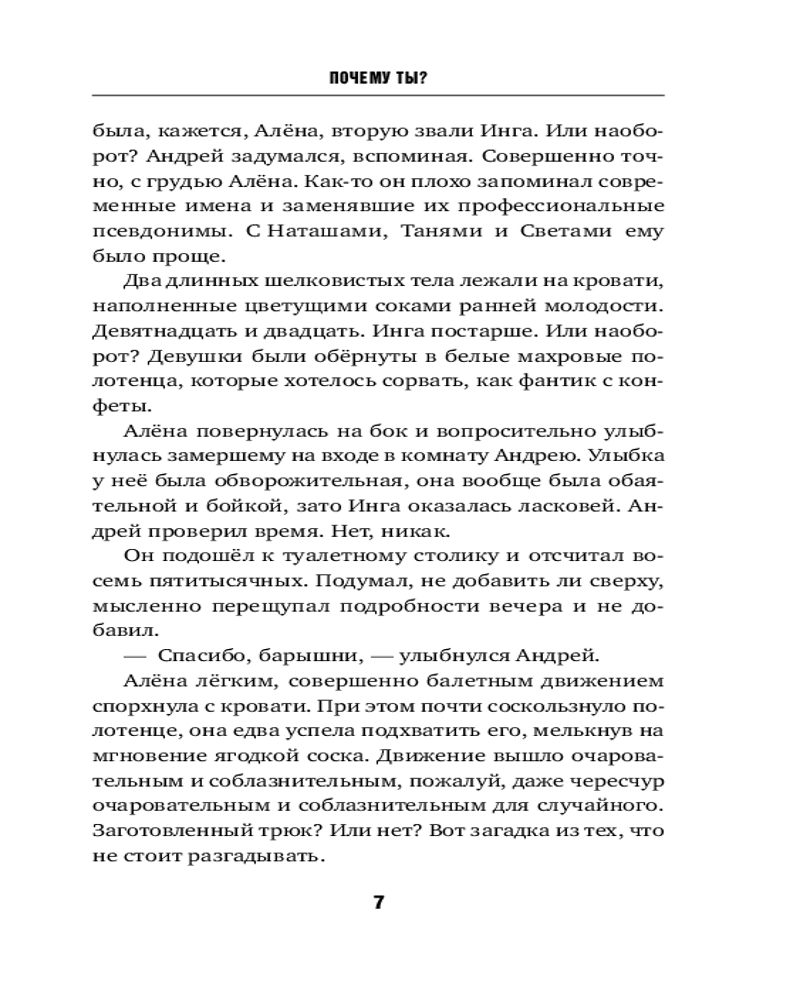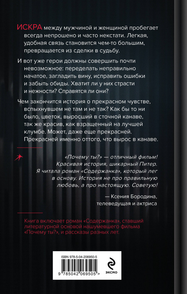 💳 Оплатить за товар можно при получении 🇰🇿 Есть бесплатная доставка по Казахстану от 1 дня 🎁 Копите бонусы с каждой покупки Серия: Кинороманы. Любовь в каждой сцене Искра между мужчиной и женщиной пробегает всегда непрошено и часто некстати. Легкая, удобная связь становится чем-то большим, превращается из сделки в судьбу. И вот уже герои должны совершить почти невозможное: переделать неправильно начатое, загладить вину, исправить ошибки и забыть обиды. Хватит ли у них страсти и нежности? Справятся ли они? Чем закончится история о прекрасном чувстве, вспыхнувшем не там и не так? Как бы то ни было, цветок, выросший в сточной канаве, так же красив, как взращенный на лучшей клумбе. Может, даже еще прекрасней. Прекрасней именно оттого, что вырос в канаве. |