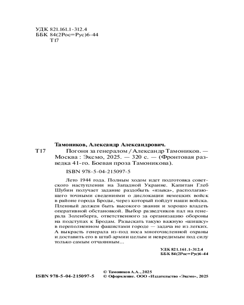 Серия: Фронтовая разведка 41-го. Боевая проза Тамоникова Боевые романы о ежедневном подвиге советских фронтовых разведчиков. Поединок силы и духа, когда до переднего края врага всего несколько шагов. Подробности жестоких боев, о которых не рассказывают даже ветераны — участники тех событий. |