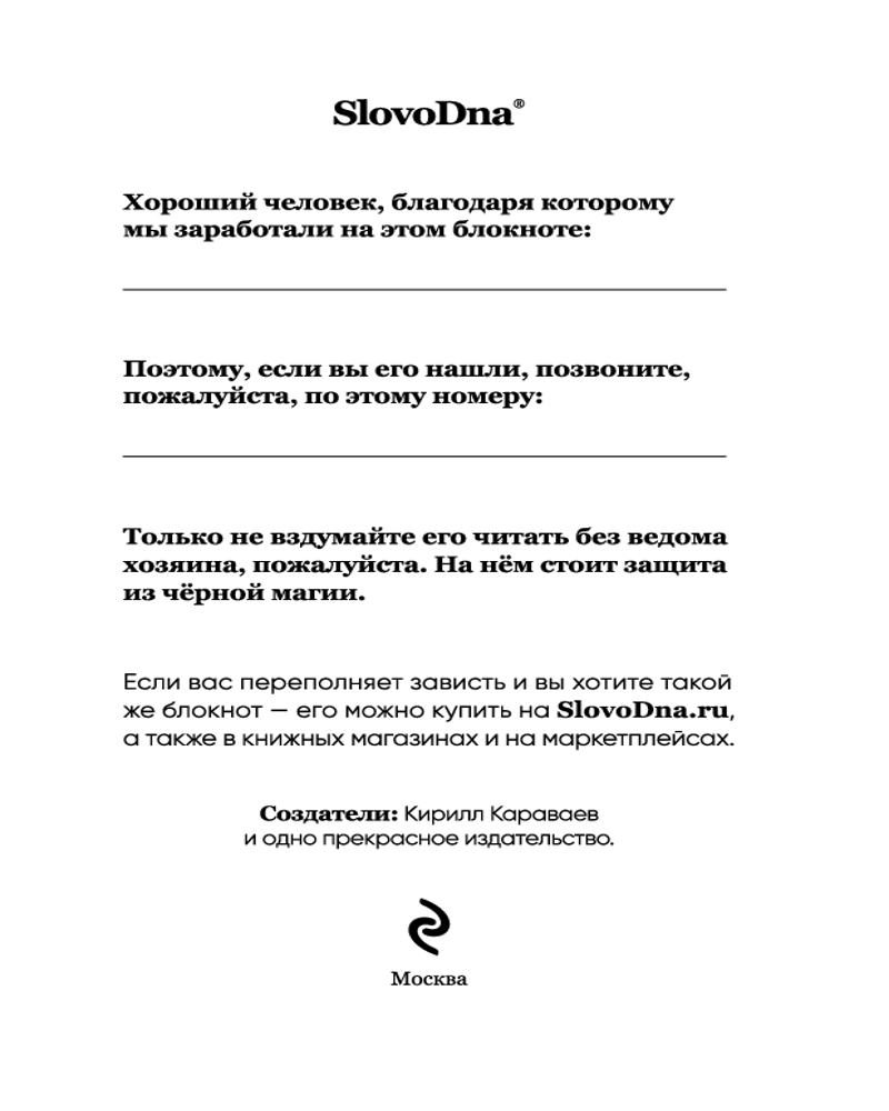 Серия: Пиши, что хочешь. Мотивационные блокноты. SlovoDna. Новый контент Абсолютно новая коллекция блокнотов от SlovoDna — с мотивирующим эффектом! Продано более 180 000 блокнотов и тетрадей SlovoDna!  |