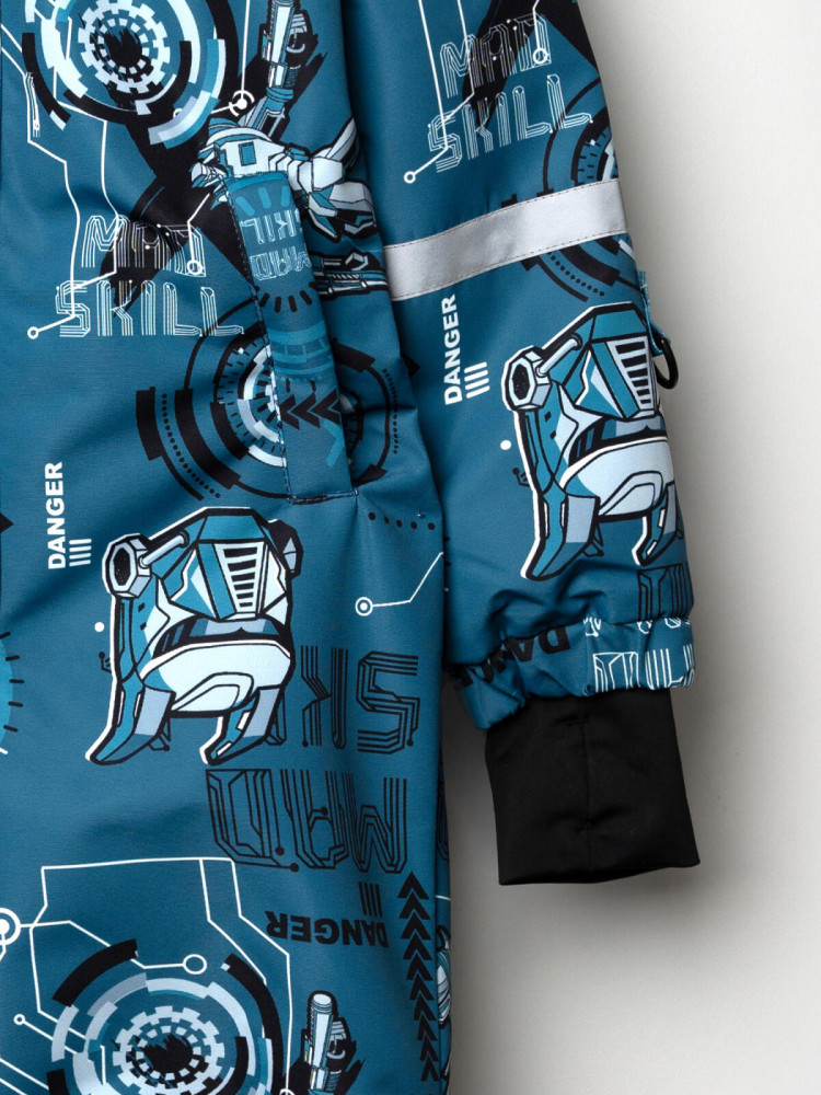 Зимний детский мембранный комбинезон для мальчика от PlayToday — надёжная защита от холода и влаги в стильном формате. Модель выполнена из прочного полиэстера с мембаной. Тёплый наполнитель (200 г/м²) и мягкая флисовая подкладка обеспечивают комфорт даже в морозные дни. Капюшон, манжеты и снегозащитные элементы надёжно закрывают от продувания, а яркий принт с роботами понравится юным любителям техники и космоса. Подходит для зимних прогулок, походов в детский сад, катания с горок, на санках и активных игр на свежем воздухе. Легко надевается поверх тёплого белья или флиса, не сковывает движений и защищает от капризов погоды. Комбинезон легко сочетается с зимней обувью, шапками и варежками PlayToday. Добавьте термобельё и флисовую кофту — и образ готов для снежных приключений! Яркий принт станет любимым у ребёнка, а вы будете спокойны за тепло и комфорт.