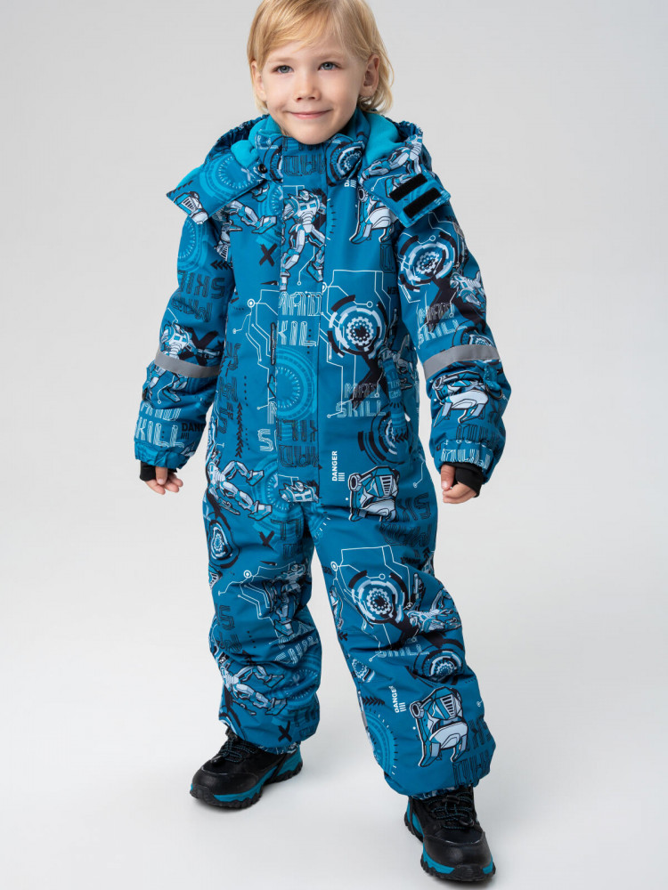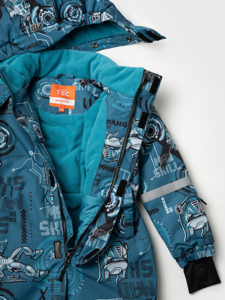 Зимний детский мембранный комбинезон для мальчика от PlayToday — надёжная защита от холода и влаги в стильном формате. Модель выполнена из прочного полиэстера с мембаной. Тёплый наполнитель (200 г/м²) и мягкая флисовая подкладка обеспечивают комфорт даже в морозные дни. Капюшон, манжеты и снегозащитные элементы надёжно закрывают от продувания, а яркий принт с роботами понравится юным любителям техники и космоса. Подходит для зимних прогулок, походов в детский сад, катания с горок, на санках и активных игр на свежем воздухе. Легко надевается поверх тёплого белья или флиса, не сковывает движений и защищает от капризов погоды. Комбинезон легко сочетается с зимней обувью, шапками и варежками PlayToday. Добавьте термобельё и флисовую кофту — и образ готов для снежных приключений! Яркий принт станет любимым у ребёнка, а вы будете спокойны за тепло и комфорт.