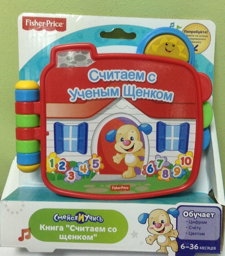 В данный момент этот товар отсутствует в продаже. Возможно, у нас найдется аналогичный или похожий товар здесь. Серия: Смейся и учись Книжка "Считаем со щенком" — это обучающая книга, которая подойдет для того, чтобы изучить вместе с малышом названия предметов, цветов. На книге присутствуют специальные кнопки, которые позволят воспроизвести незатейливые веселые мелодии. Книга полностью русифицирована, что значительно облегчит обучение. Крупные картинки соответствуют надписям и мелодиям. Яркие изображения развеселят малыша и поднимут ему настроение.