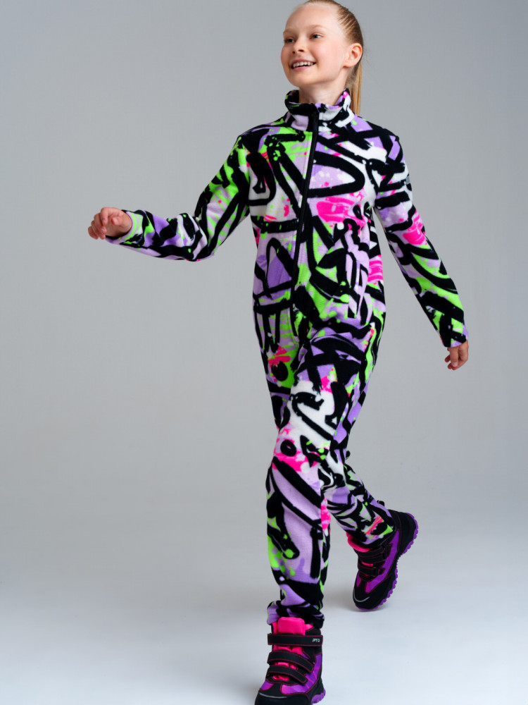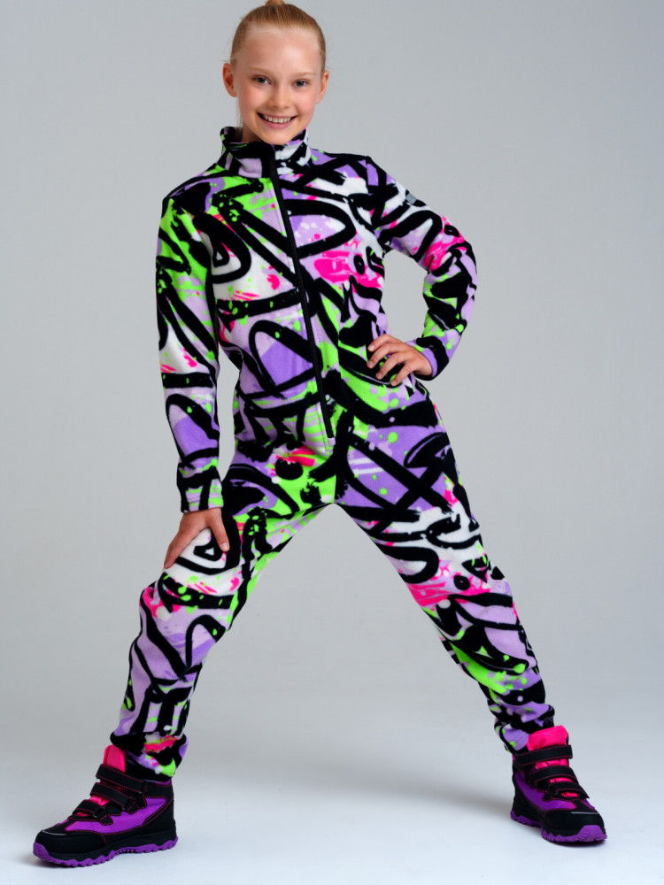 Комбинезон из флиса для девочки подростка. Линия Nord (Warm) — для повседневной одежды второго слоя в холодное время года. Плотность флиса 260 г/м2. Воротник-стойка. Манжеты с эластичной окантовкой. Клапан для защиты подбородка при застегивании молнии. Комфорт посадки обеспечен за счет конструктивной резинки на поясе сзади. Флисовая поддева идеально подходит под зимний мембранный костюм или комбинезон, в качестве второго слоя в трехслойной концепции одежды для зимы. Основная функция поддевы из флиса — удерживать тепло и передавать пар от первого слоя — термобелья, оставаясь сухим. Флис — мягкий, теплый, легкий и неприхотливый материал, способный сохранять тепло и в сухом, и в мокром виде, комфортный и гипоаллергенный. Детские яркие модели из флиса отличаются стильным дизайном и комфортным кроем, который не сковывает движений ребенка. К тому же, они быстро сохнут и легко стираются, что делает их идеальными для повседневного использования в холодное время года.