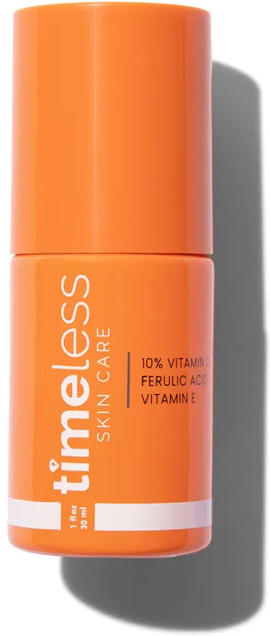 Timeless — Skin Care — 10% Vitamin C + E Ferulic Acid Serum — сыворотка стабилизирует витамины Е и С, а также повышает их эффективность. Кроме того, она поглощает лучи UVA и UVB и таким образом действует как природный солнцезащитный крем. Сыворотка имеет легкую и нежирную консистенцию, поэтому прекрасно наносится и быстро впитывается.