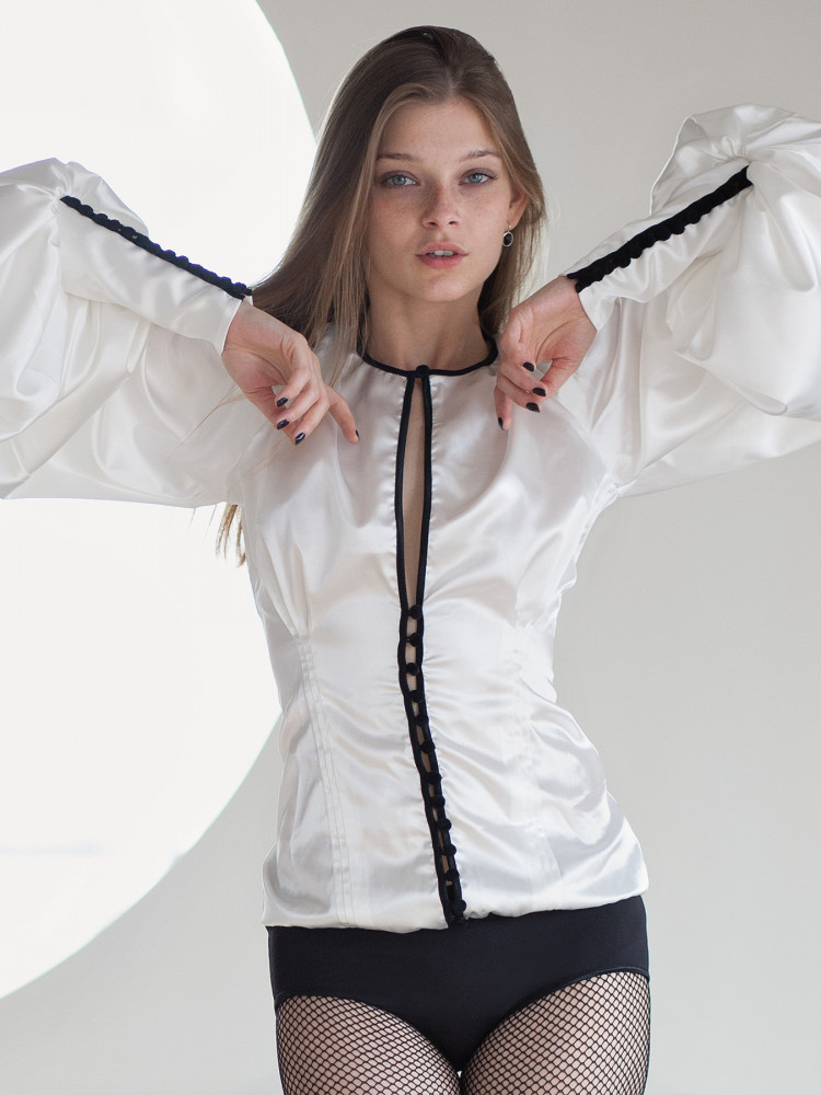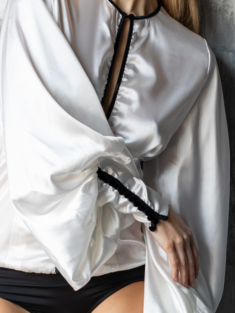Шикарное боди из эластичной атласной ткани, украшено застежкой из множества бархатных пуговиц. Такую вещь можно надеть как дома, так и на светский раут. Вы произведете фурор!