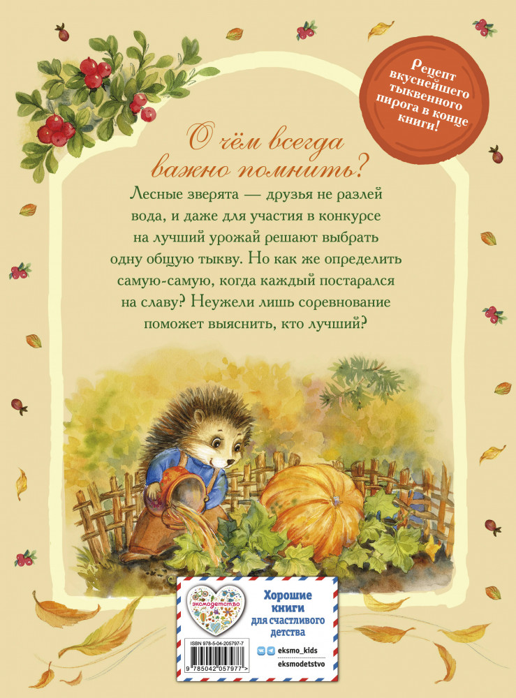 Добрая история для всей семьи о лесных зверятах, которые решили поучаствовать в конкурсе, проходящем в соседнем лесу! Устройте себе уютный вечер, читая о дружных и трудолюбивых зверятах и любуясь невероятными акварельными иллюстрациями на мелованной бумаге, в которых важна каждая деталь. А после приготовьте вкуснейший тыквенный пирог по рецепту в конце книги. Серия «Лесные зверята — лучшие друзья. Добрые сказки» — это рассказы для всей семьи. Проведите время вместе, читая волшебные истории с поучительным сюжетом!