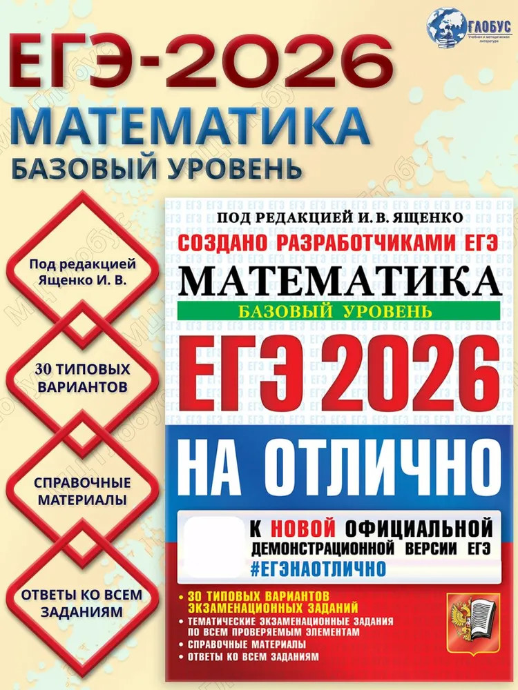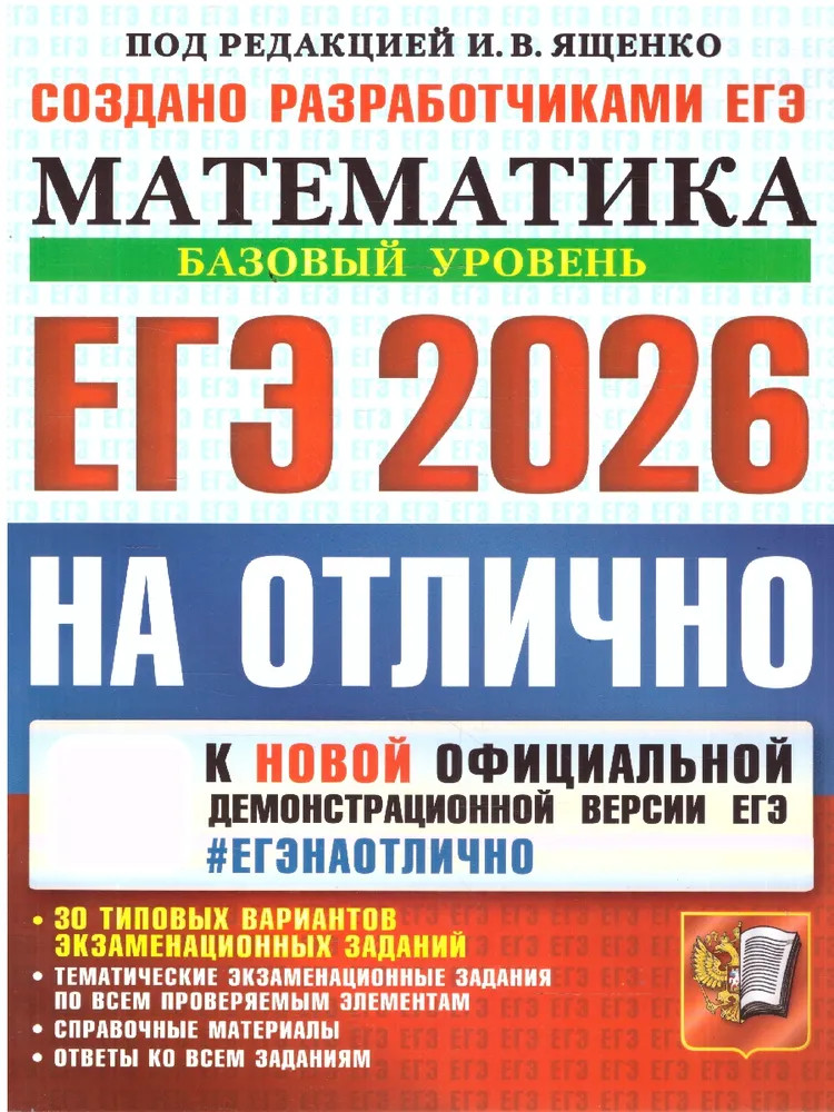 Серия: На отлично! Предлагаемое пособие необходимо выпускникам для подготовки к сдаче Единого государственного экзамена по математике базового уровня в 2026 году на отличный результат. Пособие содержит тематические экзаменационные задания по всем проверяемым элементам содержания Единого государственного экзамена по математике базового уровня, 30 типовых вариантов экзаменационных заданий 2026 года, инструкцию по выполнению работы, справочные материалы, бланки ответов и ответы ко всем заданиям. Тематические экзаменационные задания помогут закрепить изученный материал, дадут возможность отработать как все темы в целом, так и только те, которые покажутся сложными. Выполнение типовых вариантов экзаменационных заданий за установленное время позволит приблизить ситуацию к экзаменационной. |