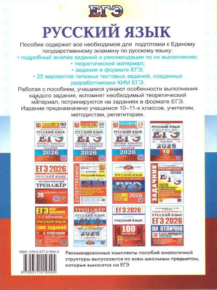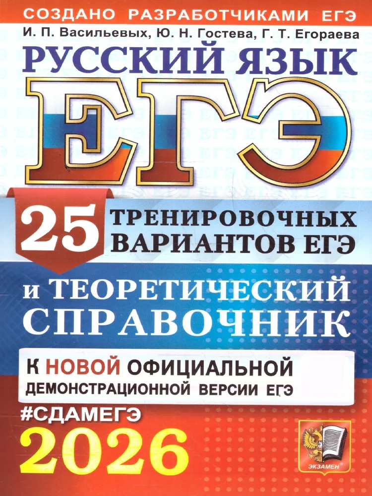 ЕГЭ 2026. Русский язык. 25 тренировочных вариантов ЕГЭ и теоретический справочникГалина Тимофеевна Егораева, Ирина Павловна Васильевых, Юлия Николаевна Гостева новинка