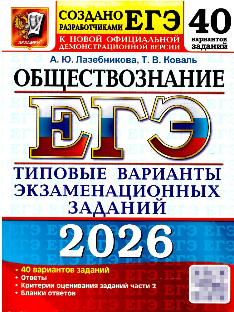 ЕГЭ 2026. Обществознание. 40 вариантов. Типовые варианты экзаменационных заданийТ. В. Коваль, Анна Юрьевна Лазебникова +163