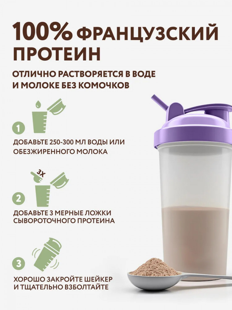 100% французский сывороточный протеин для набора мышечной массы и похудения с приятным вкусом спелого банана. Без сахара, искусственных красителей, ароматизаторов и с низким содержанием жиров. Высокое европейское качество позволяет нашему протеину отлично растворяться в воде и молоке, не образовывая комочков. Также он высоко эффективен для набора мышечной массы, снижает уровень сахара в крови, помогает скорому восстановлению кожи и костей и обладает наибольшей скоростью усвоения. 1 порция может полностью заменить полноценный прием пищи — это отличный вариант перекуса! Также вы можете добавлять протеин в завтраки и выпечку, например в панкейки, вафли каши и другие десерты. Вы точно найдете свой любимый вкус в нашей линейке Hi Protein: «Шоколад», «Ванильное мороженое», «Клубника», «Банан» и «Орехи-шоколад».