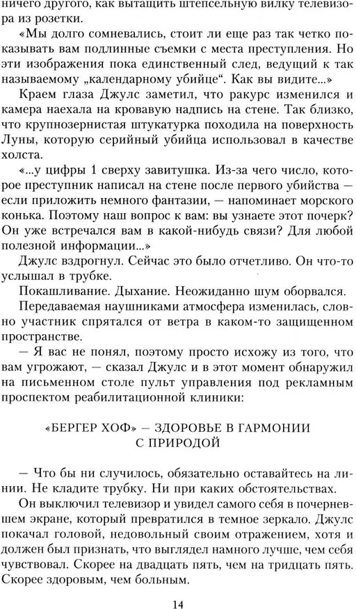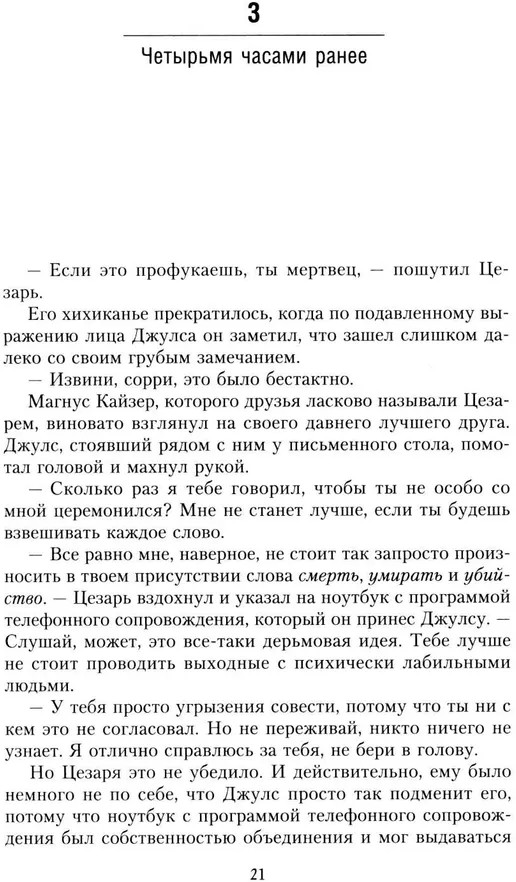 Серия: Зарубежный детектив Субботний вечер, начало одиннадцатого. Джулс Таннберг дежурит в волонтерской телефонной службе ночного сопровождения для женщин, которым стало страшно по пути домой, и они нуждаются в виртуальном попутчике. Легкой доброжелательной беседой он создаст впечатление, что женщина не одна в темных пустынных уголках города, а при необходимости вызовет помощь. Но при по-настоящему опасной для жизни ситуации сюда еще никто не обращался. До сегодняшнего вечера, когда Джулс ответил на звонок Клары. Молодая женщина до смерти напугана. Она утверждает, что ее преследует мужчина, который уже однажды напал на нее и кровью написал на стене спальни дату: день смерти Клары! И до наступления этого дня осталось менее двух часов... |