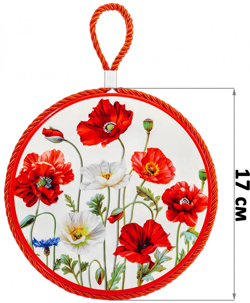 Elan Gallery Подставка под горячее «Маки»новинка В данный момент этот товар отсутствует в продаже. Возможно, у нас найдется аналогичный или похожий товар здесь. Серия: Маки Подставка под горячее «Маки» от Elan Gallery поможет в эстетичной сервировке вашего стола. Размер изделия — 17×17×1 см. Сочетает в себе прочную керамику и пробковый поддон. Керамическая поверхность не деформируется со временем от воздействия высоких температур и легко отмывается. Основание из пробки защищает стол и предотвращает скольжение. Декоративное покрытие визуально имитирует плитку с красочным орнаментом. По краю изделие украшено ободком из жёлтого нейлонового шнурка. В одном месте он образует петельку, благодаря чему изделие удобно хранить, подвесив на крючок или рейлинг. Так яркое изделие послужит в качестве аксессуара для декора вашей кухни. |