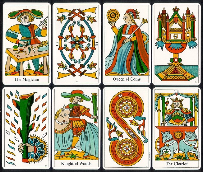 Это русская версия Tarot de Marseille Convos. Автор и художник: Otto Spalinger. Оригинал выпускает издательство: AGM AGMuller. На фото оригинал. Колода от издательства Весь выглядит практически также, отличная цветопередача.Симпатичная рубашка в виде орнамента. Видно, где прямое положение карт и где перевернутое. Общее впечатление приятное, вот только мне не хватает плотности картона или ламинации.