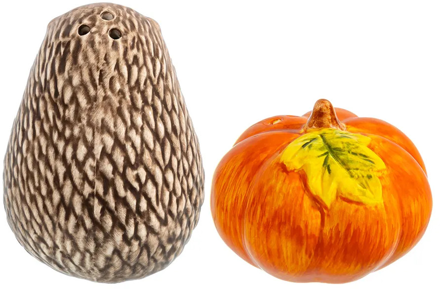 Серия: Ёжики Набор для специй из серии «Ёжики» от Elan Gallery предназначен для эстетичной сервировки вашего стола. Выполнен из керамики. Включает в себя перечницу в виде реалистичной тыквы и солонку в виде милого ёжика. Тыква как символ изобилия вплетена в сюжет коллекции. Она ассоциируется с уютными осенними вечерами и волшебной атмосферой Хэллоуина. Ёмкости необычной формы позволят держать под рукой все необходимые во время приготовления еды специи и приправы. Наполняются через отверстие снизу и закрываются пластиковой пробкой. |