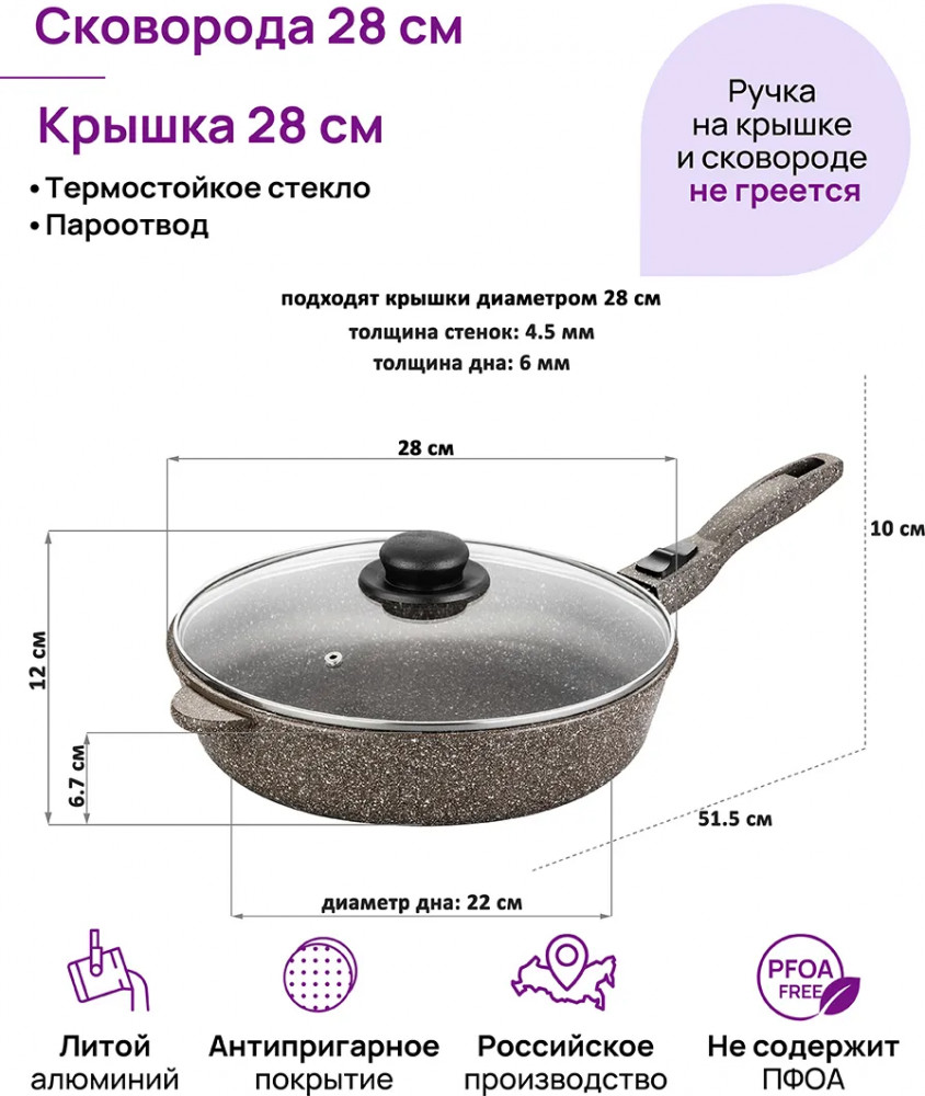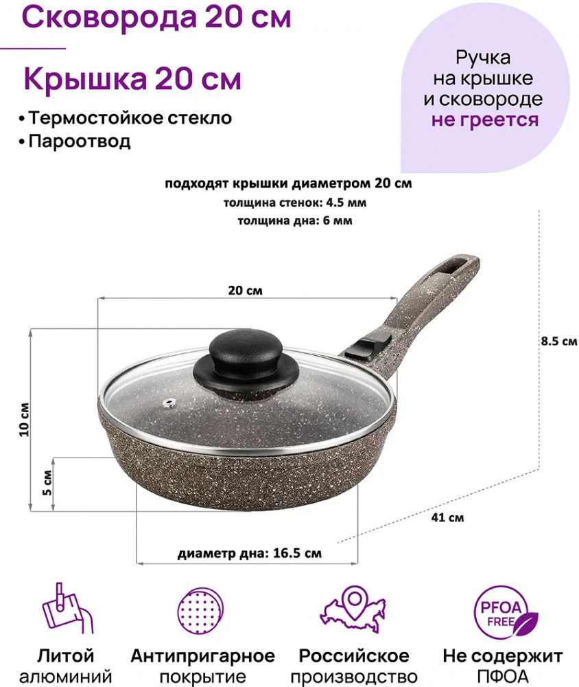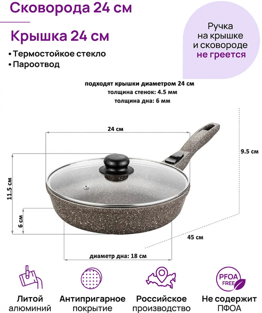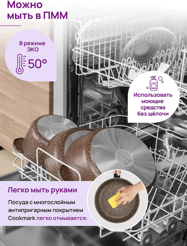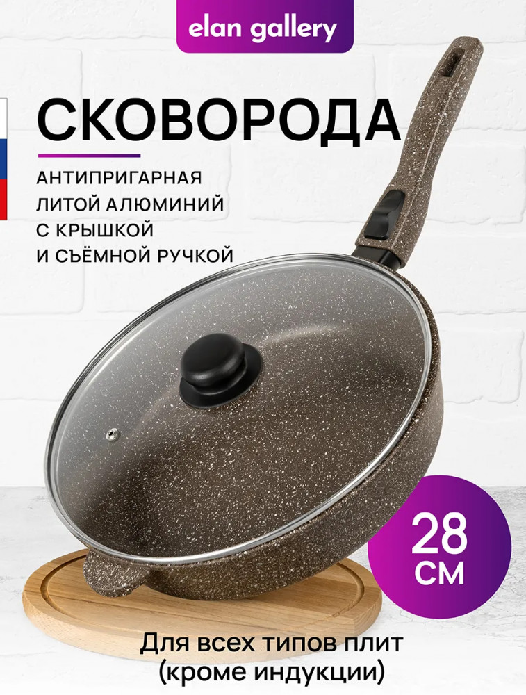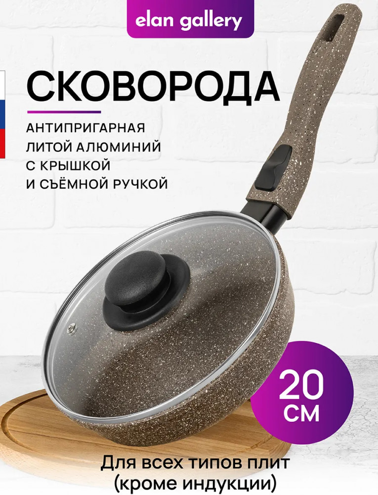 Elan Gallery Набор посуды для приготовления из литого алюминия с крышками и съемными ручками «Коричневый опал»