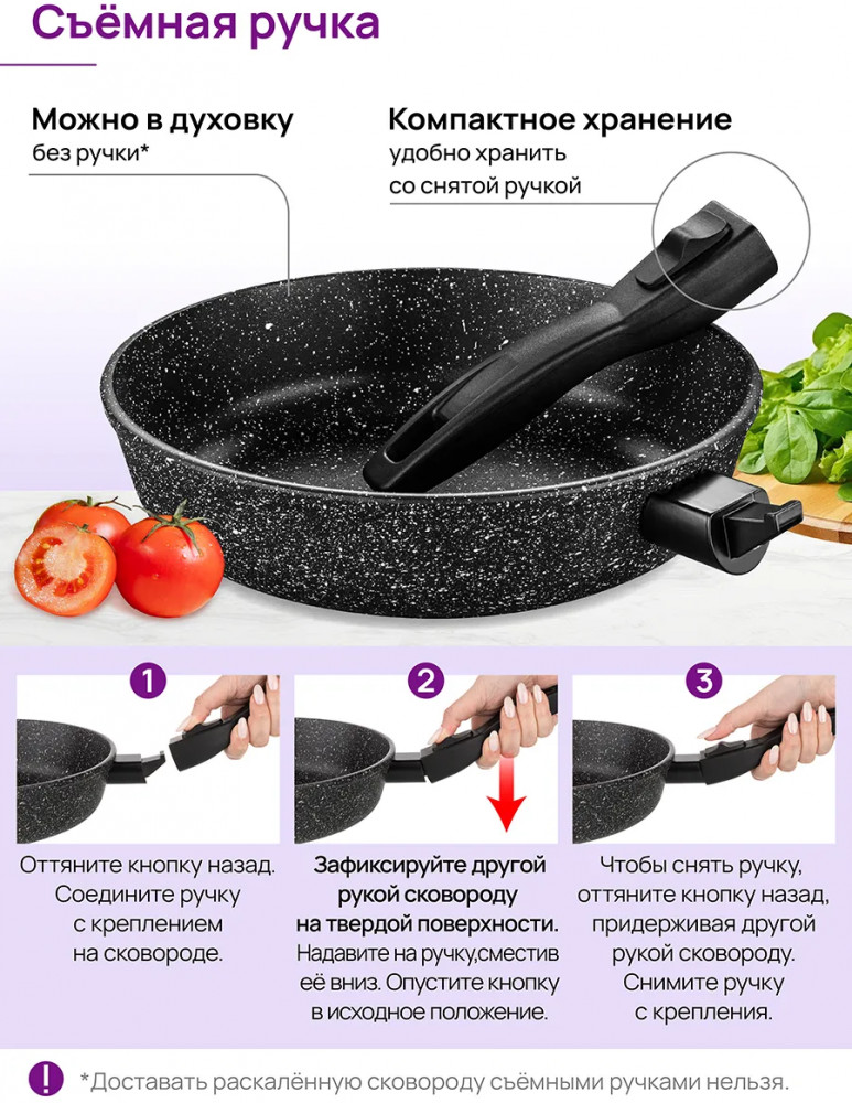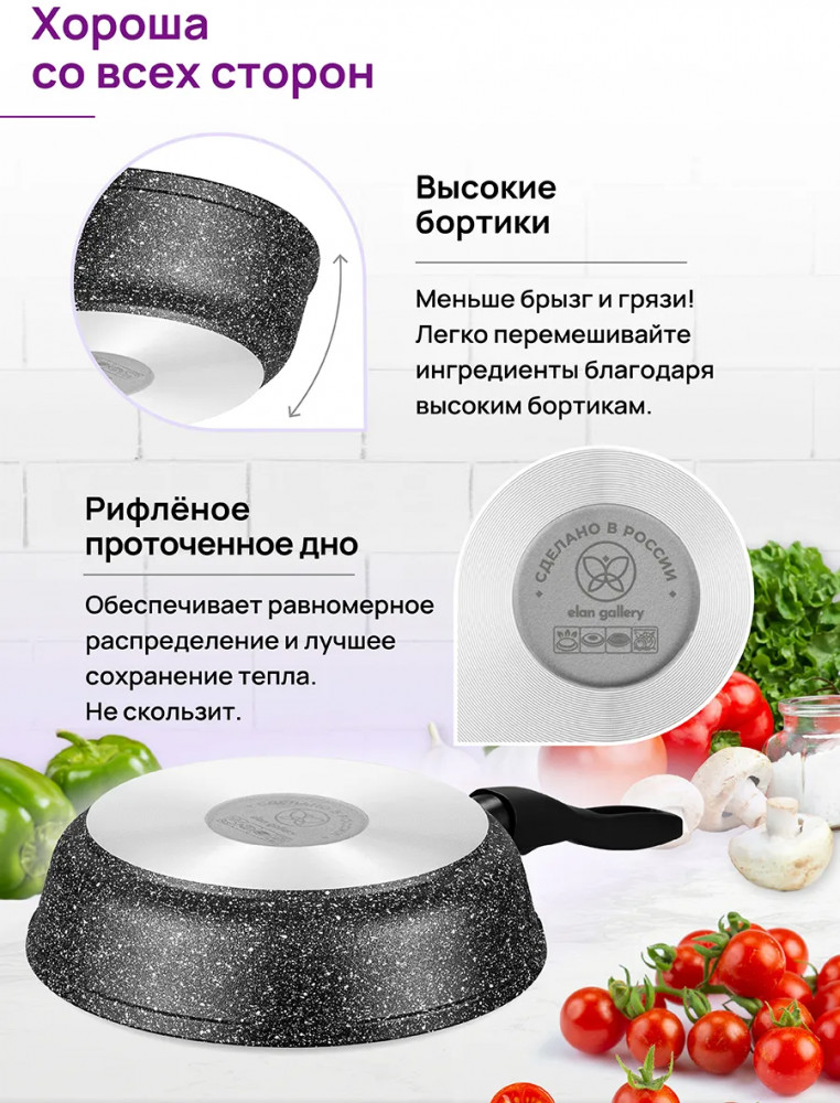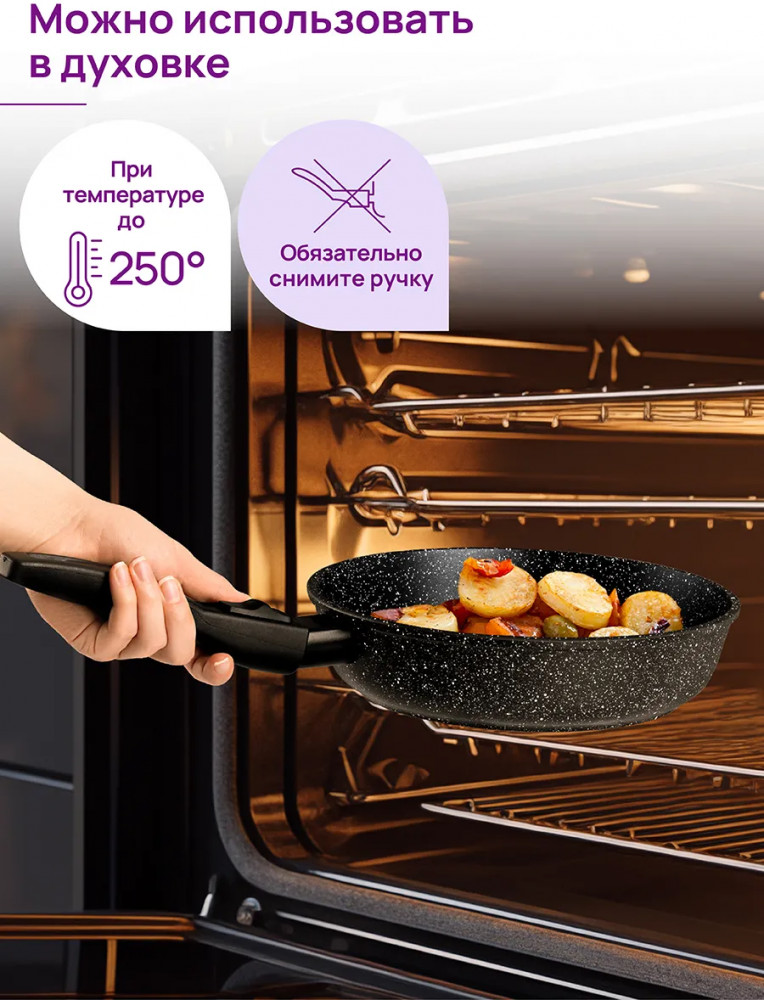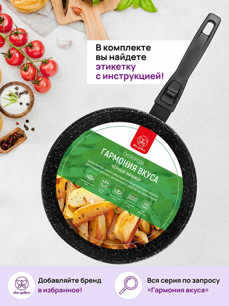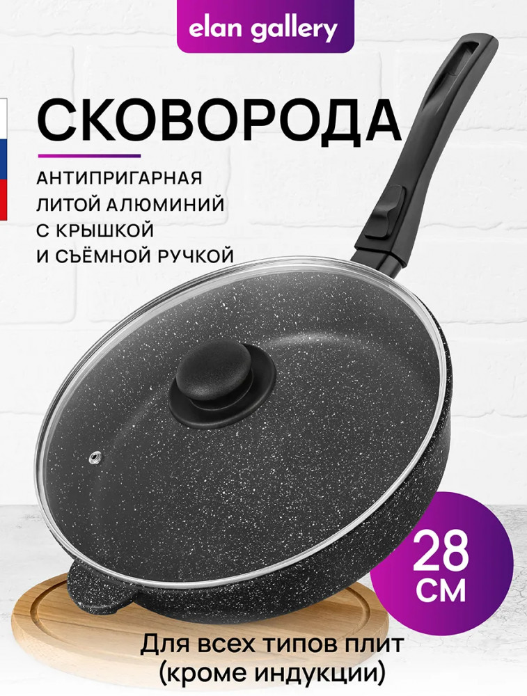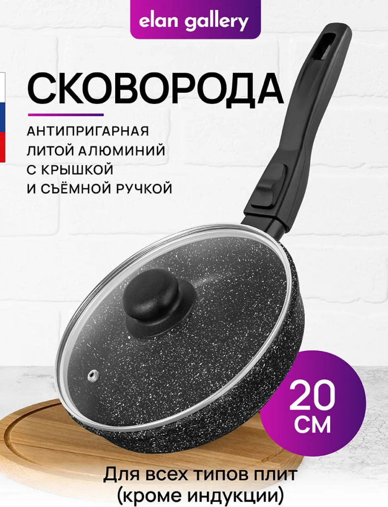 Elan Gallery Набор посуды для приготовления из литого алюминия с крышками и съемными ручками «Черный мрамор»