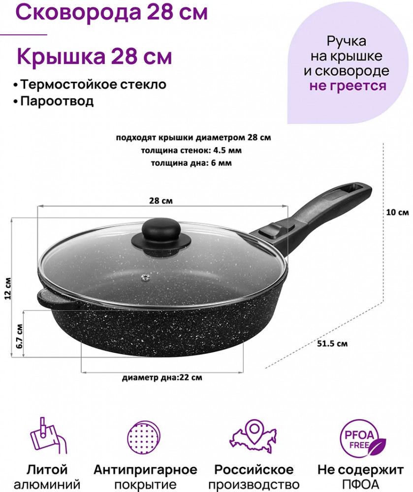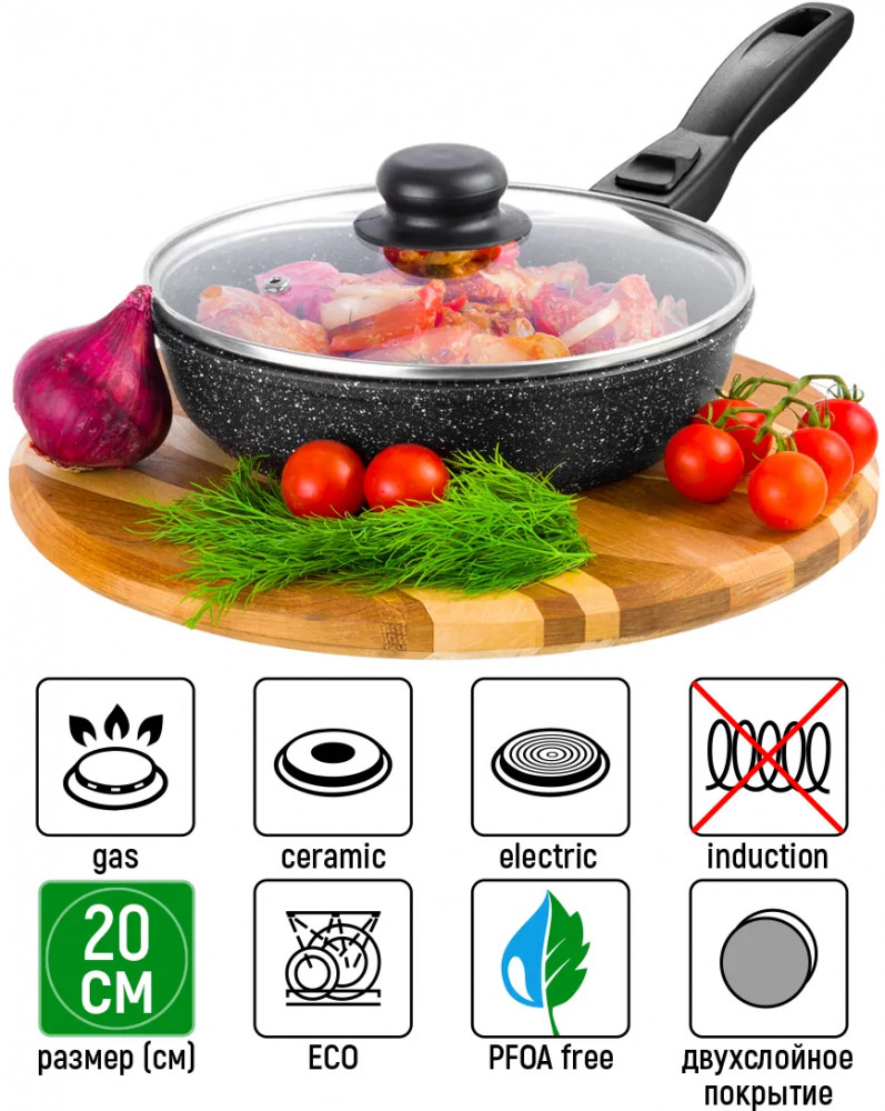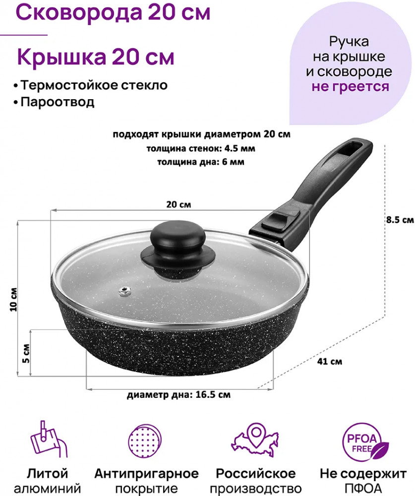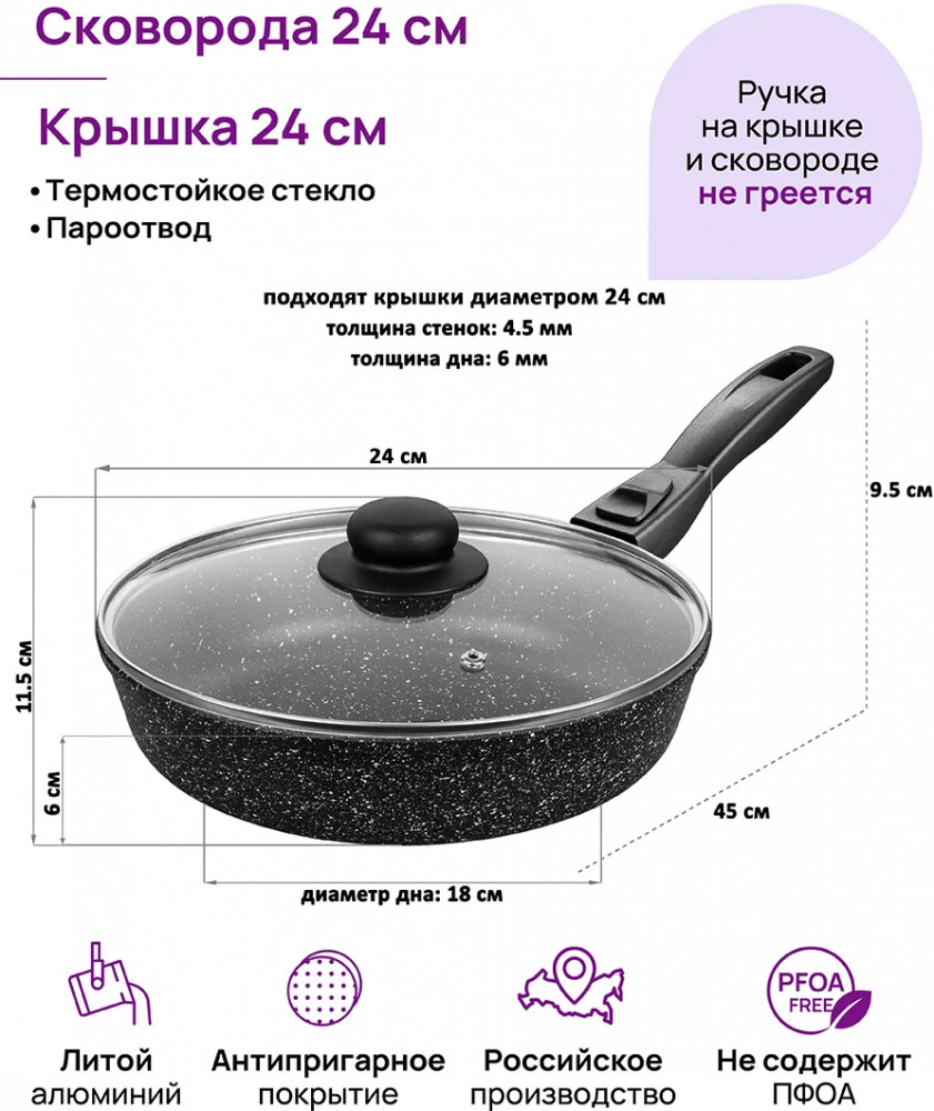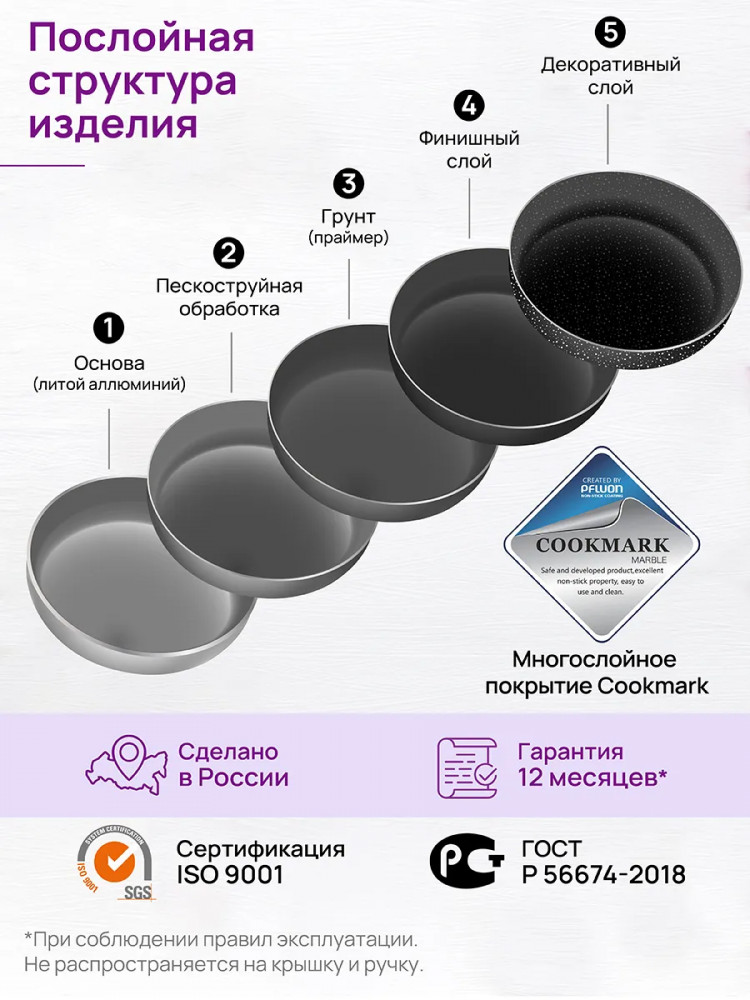Elan Gallery Набор посуды для приготовления из литого алюминия с крышками и съемными ручками «Черный мрамор»