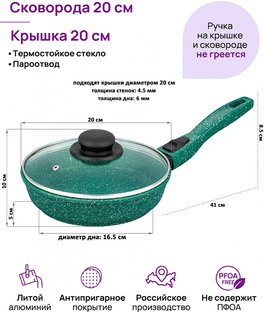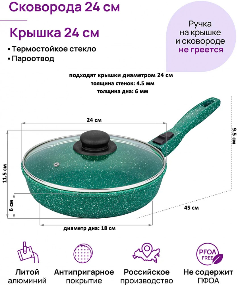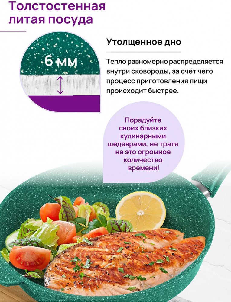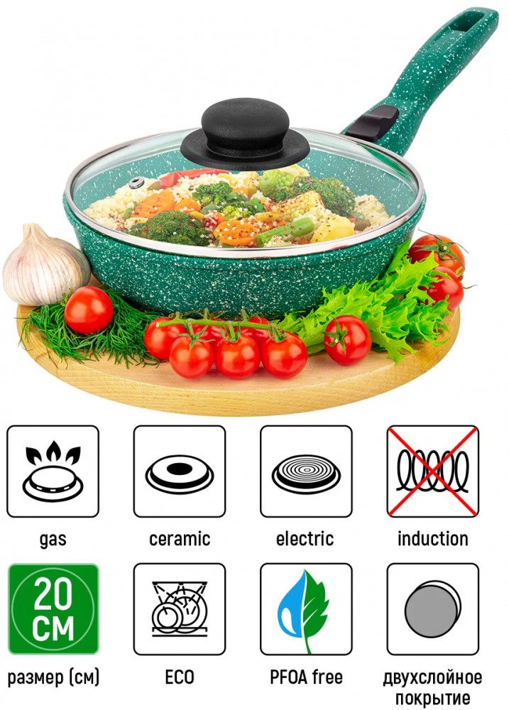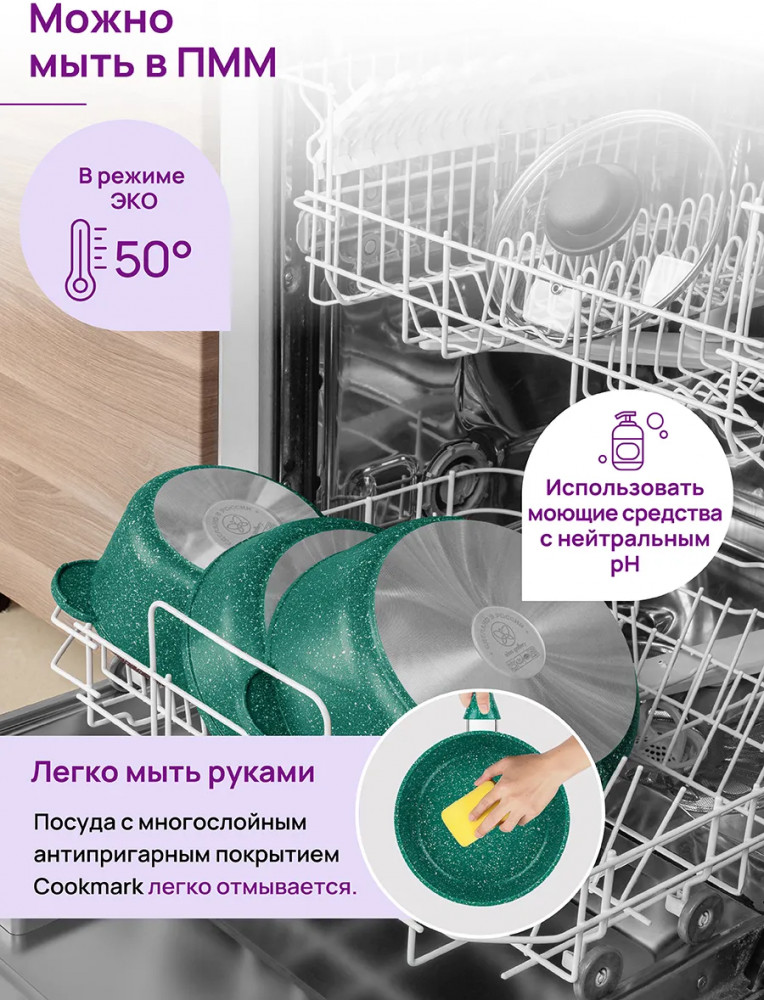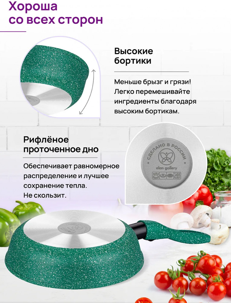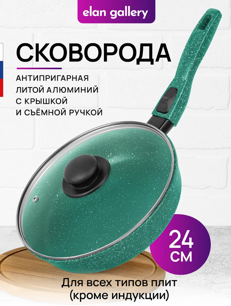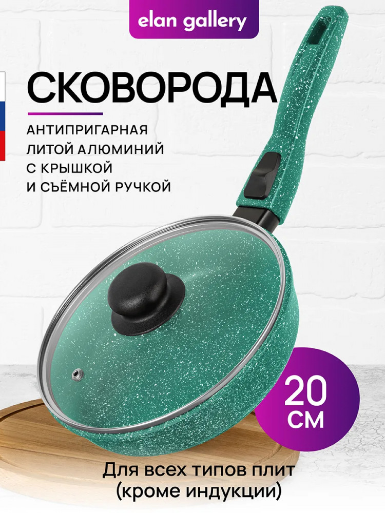 Elan Gallery Набор посуды для приготовления из литого алюминия с крышками и съемными ручками «Изумруд»