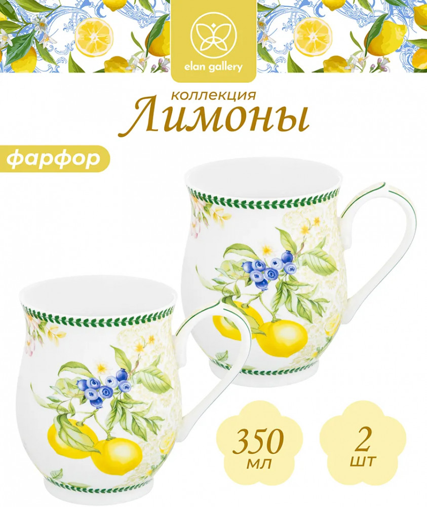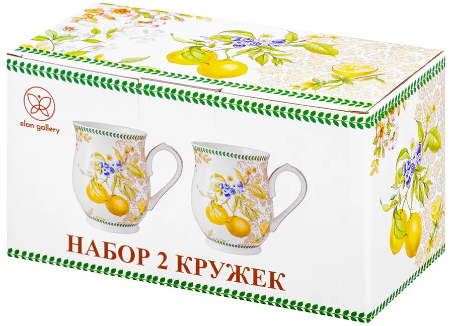 В данный момент этот товар отсутствует в продаже. Возможно, у нас найдется аналогичный или похожий товар здесь. Серия: Лимоны Набор 2 кружек из серии «Лимоны» от Elan Gallery предназначен для эстетичной сервировки вашего стола. Размер каждой ёмкости — 11,5×8,2×10 см, объём — 350 мл. Выполнены из фарфора нового поколения new bone china, сочетающего в себе изящность и высокую прочность. Такие изделия легко отмываются, поэтому сохраняют привлекательный вид и практичны в использовании. Плотная структура материала позволяет посуде дольше сохранять температуру блюд и напитков. От других видов костяного фарфора new bone china отличается большей экологичностью в производстве.