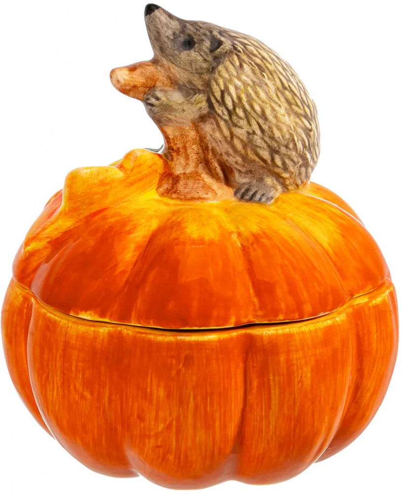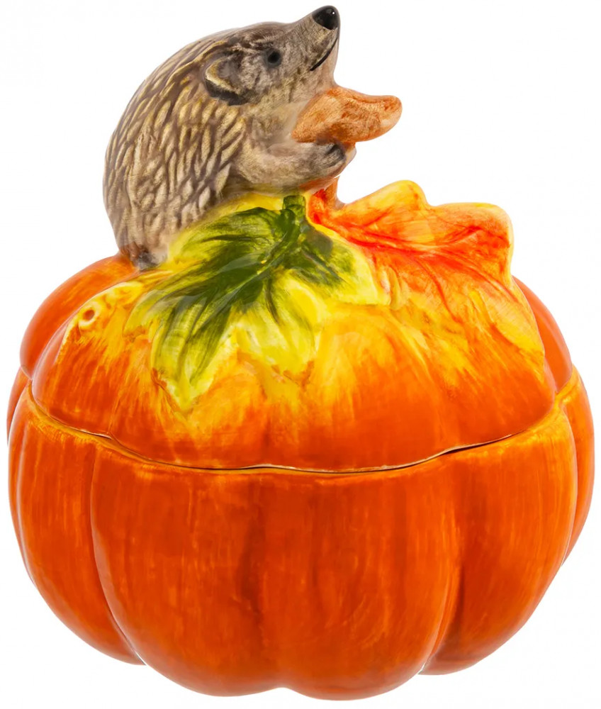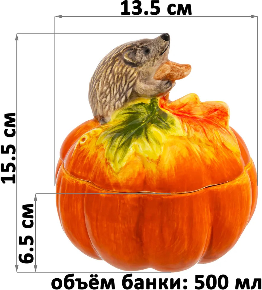 Серия: Ёжики Банка для печенья из серии «Ёжики» от Elan Gallery поможет организовать хранение продуктов на вашей кухне. Размер изделия — 13.5×13.5×15.5 см, объём — 500 мл, размер дна — 9 см. Выполнена из керамики в виде большой реалистичной тыквы, на верхушке которой сидит маленький ёжик. Тыква как символ изобилия вплетена в сюжет коллекции. Она ассоциируется с уютными осенними вечерами и волшебной атмосферой Хэллоуина. Красивый контейнер подойдёт для ваших любимых угощений и сладостей: конфет, печенья, леденцов и зефира. Сложите в него орехи, ягоды и сухофрукты. Используйте для хранения различных сыпучих продуктов: чая и кофе, сахара и соли, приправ и специй. Он станет незаменимым элементом вашего кухонного инвентаря и пригодится при подаче самых разнообразных блюд. Прекрасно дополнит сервировку праздничного стола. Используйте в качестве декоративной фигурки, разместите на полке или тумбочке. |
