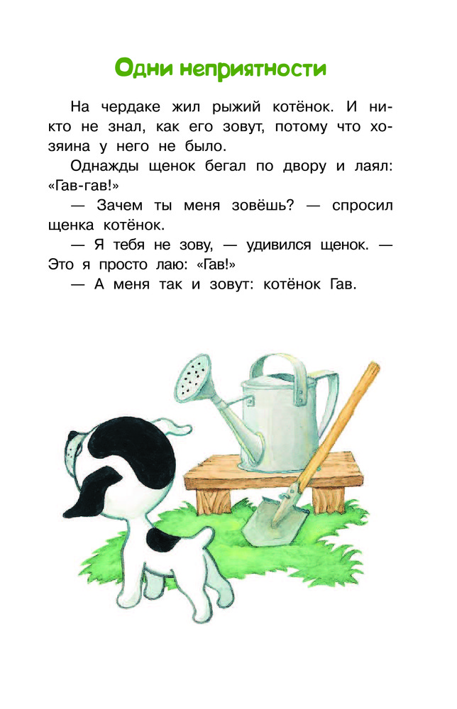 Котенок по имени ГавВ данный момент этот товар отсутствует в продаже. Возможно, у нас найдется аналогичный или похожий товар здесь. Серия: Библиотека начальной школы Каждый ребёнок мечтает завести котёнка или щенка, чтобы играть и гулять с ними. Если у вашего малыша ещё нет домашнего любимца, то котёнок Гав непременно станет им! Он маленький, рыжий и очень сообразительный. С ним и его другом щенком постоянно случаются разные забавные истории, которые можно прочитать в нашей книге. |