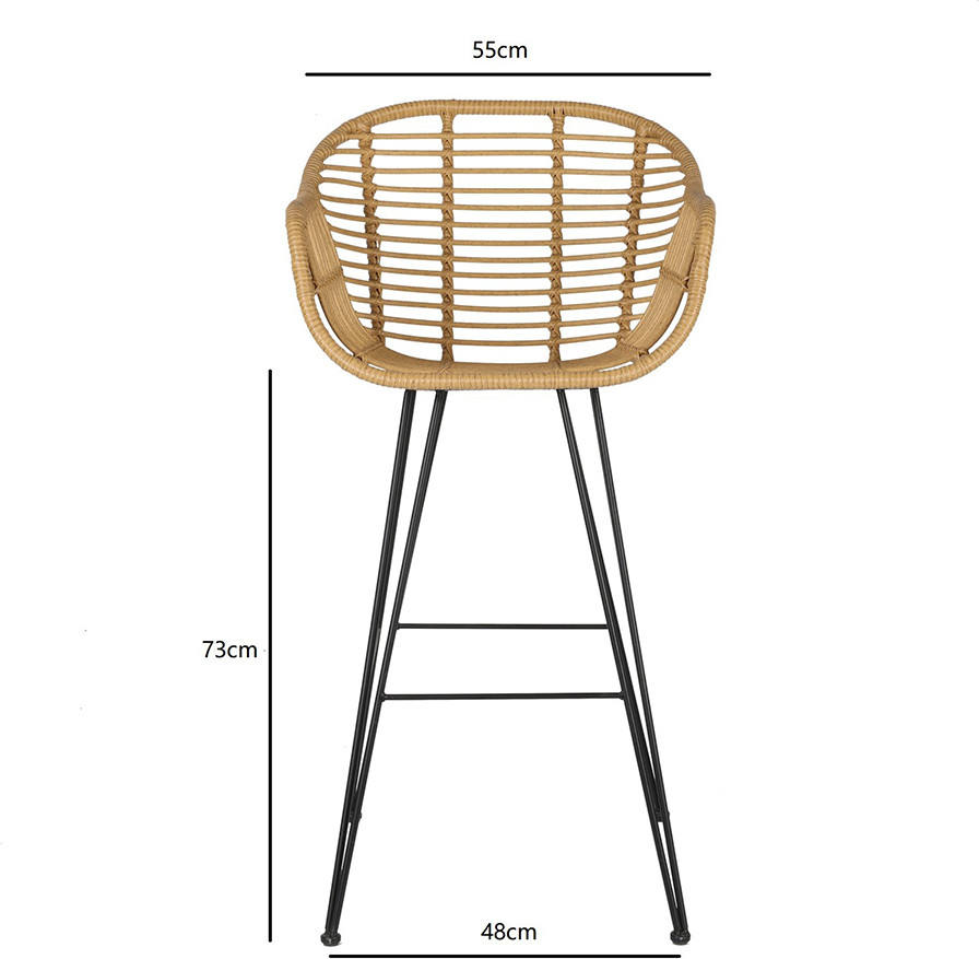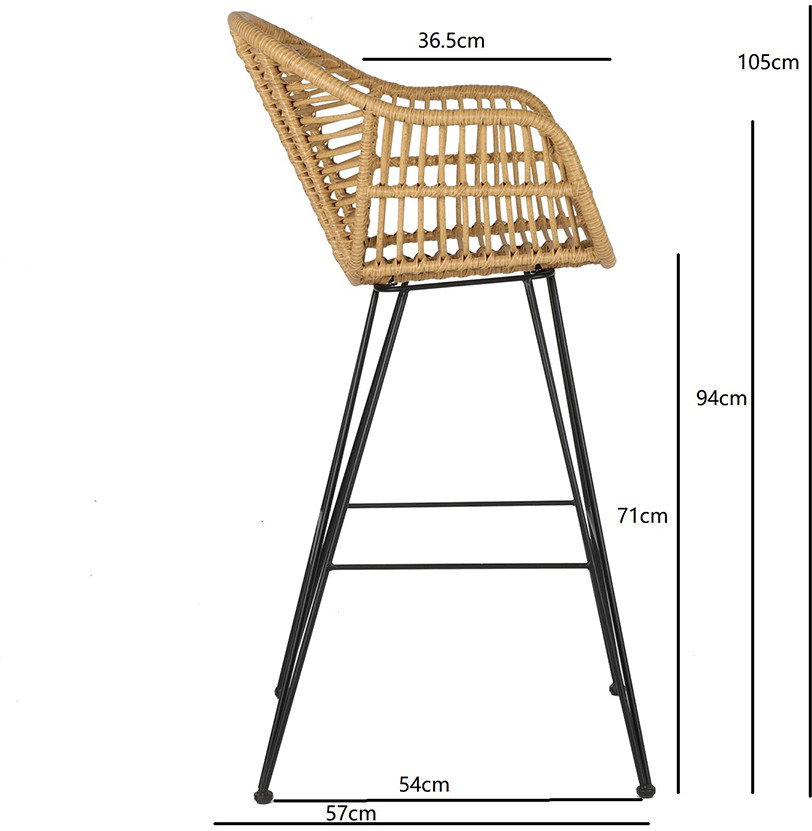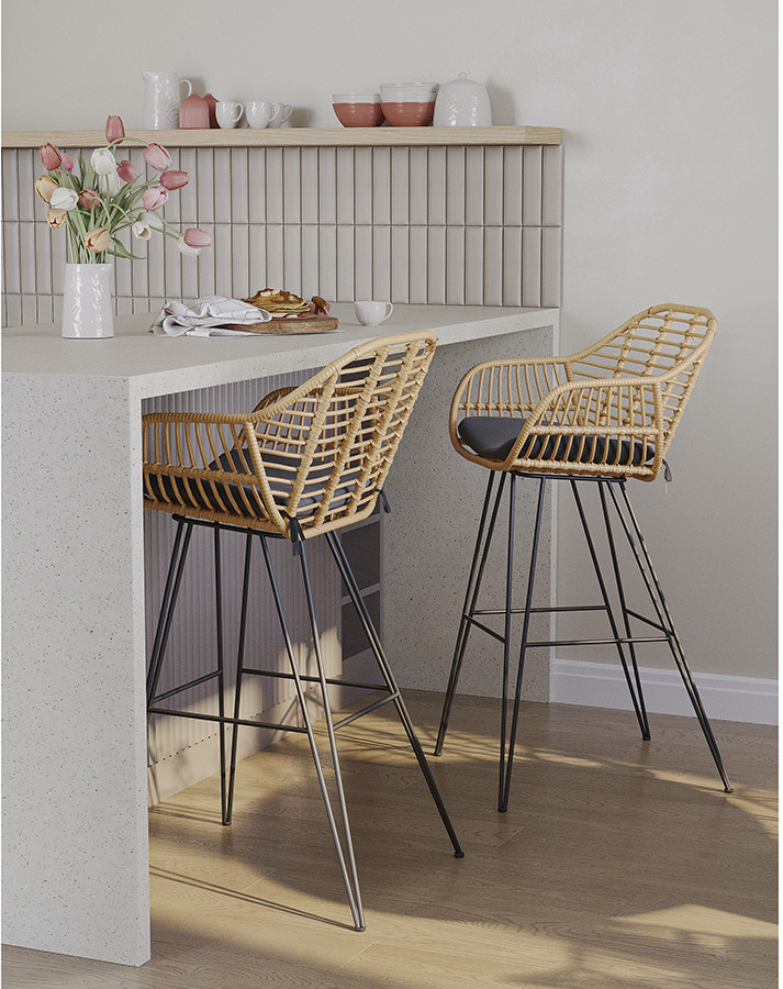 Стул барный Vetle Bent — великолепное сочетание привлекательного дизайна, практичности и долговечности. Мебель с ротанговым плетением делает любое пространство уютным и идеально подходит для обустройства зоны отдыха в помещении и на улице. Модель идеально вписывается в такие стилевые решения, как эко, кантри и прованс.