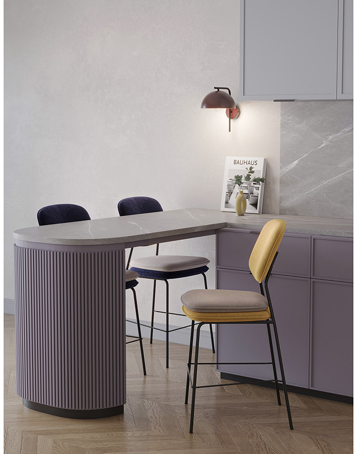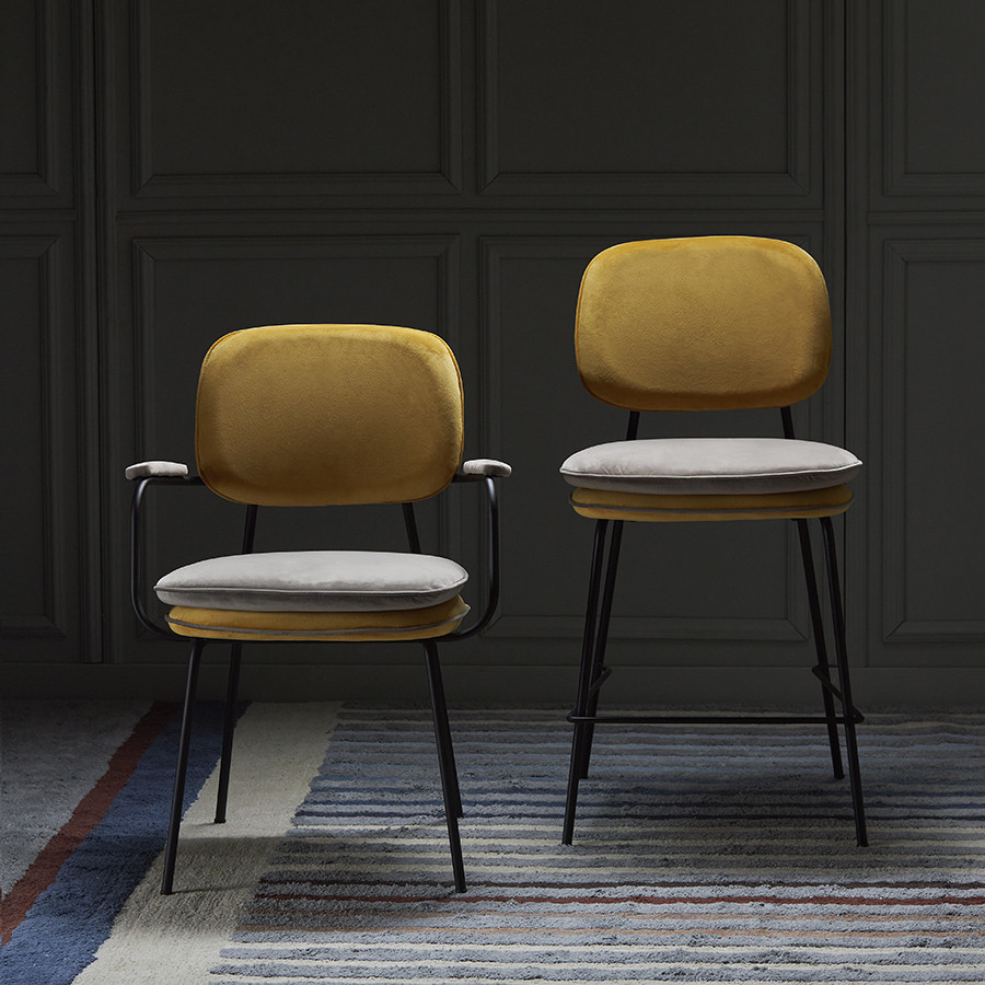 Стул полубарный Pea с контрастным кантом и мягкой обивкой из бархатистого велюра станет настоящим украшением интерьера и идеальным выбором для ценителей качественной и элегантной мебели.