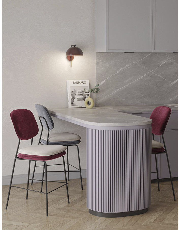 Стул полубарный Pea с контрастным кантом и мягкой обивкой из бархатистого велюра станет настоящим украшением интерьера и идеальным выбором для ценителей качественной и элегантной мебели.