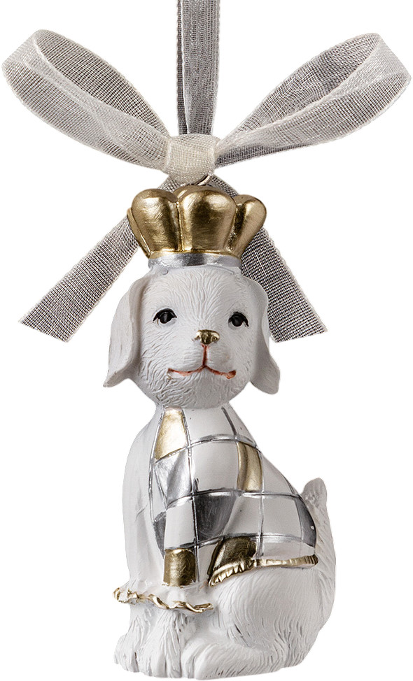 Серия: Магия золота Милый песик одет в свитер с геометрическим узором, подчеркнутым золотой и серебряной краской. На голове красуется корона. Украшение отличается тонко выполненными деталями. Изделие оснащено шелковистой ленточкой для подвешивания. Подходит для елок до 140 см. |
