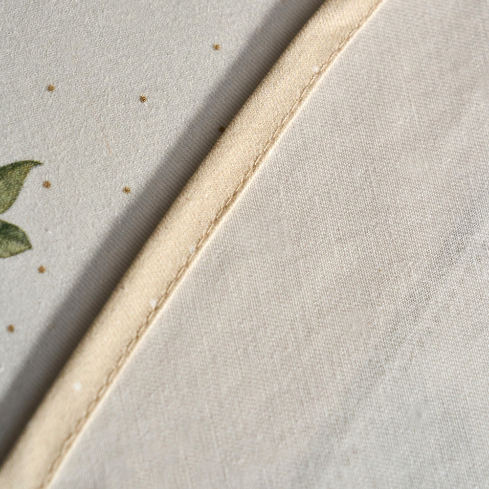 Особым направлением бренда «Santalino» является изготовление столового белья (скатерти, салфетки, дорожки (раннер), плейсметы, полотенца, фартуки) по эксклюзивным дизайнам наших художников, воплощённых в цифровой печати, на современном оборудовании. Для пошива изделий используются только натуральные материалы 100% хлопок, плотность ткани составляет 190 гр\м2, она имеет приятную структуру в мелкий рубчик и называется твил, отличается хорошей капиллярностью (впитываемость влаги), драпируемостью, износостойкостью, ткань проходит процесс каландрирования, что делает её более плотной и придаёт лёгкий атласный блеск, предотвращает образование так называемых «катышек» т.е. уменьшается пилингуемость ткани.