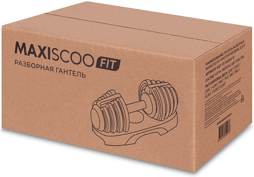 Гантель Разборная Maxiscoo Fit — это универсальный и функциональный инструмент для эффективных тренировок. Регулируемая гантель способна заменить небольшой тренажерный зал у вас дома. Изготовленная из высококачественных материалов, она обеспечивает комфортное и безопасное использование. Многоуровневая конструкция гантели позволяет регулировать вес на 11 уровнях: 1,5кг; 2,5 кг; 3,5 кг; 4,5кг; 6кг; 7кг; 8кг; 9кг; 10,5кг; 11,5кг и 12,5кг, что делает её идеальным выбором для тех, кто стремится к более интенсивным тренировкам и хочет постепенно увеличивать нагрузку. Благодаря переключателям, можно за несколько секунд изменить и выбрать нужный вам вес. Подставка для гантели идет в комплекте. Одна гантель MAXISCOO FIT заменяет целый гантельный ряд, освобождая место в вашем доме и упрощая процесс тренировок.