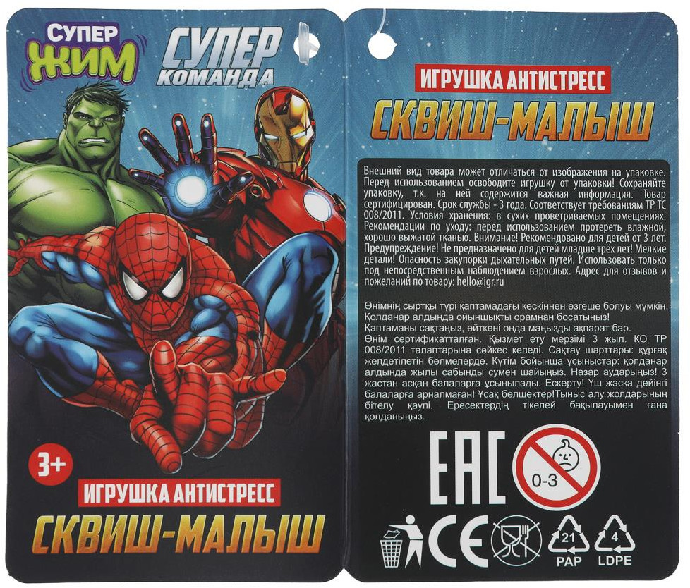 Серия: Сквиш-малыш Игрушка-антистресс «Супергерой в маске» из серии «Сквиш-малыш» ТМ «СуперЖим» непременно понравится маленькому непоседе. Эта мягкая мялка в виде известного супергероя заинтересует вашего ребёнка: он с удовольствием будет мять её, наблюдая за тем, как она меняет и восстанавливает свою форму. К тому же эта игрушка является прекрасным тренажёром для детских пальцев, развивающим мелкую моторику. Игрушка-сквиш ТМ «СуперЖим» также оказывает успокаивающий эффект и развивает: воображение, фантазию и сенсорное восприятие. |
