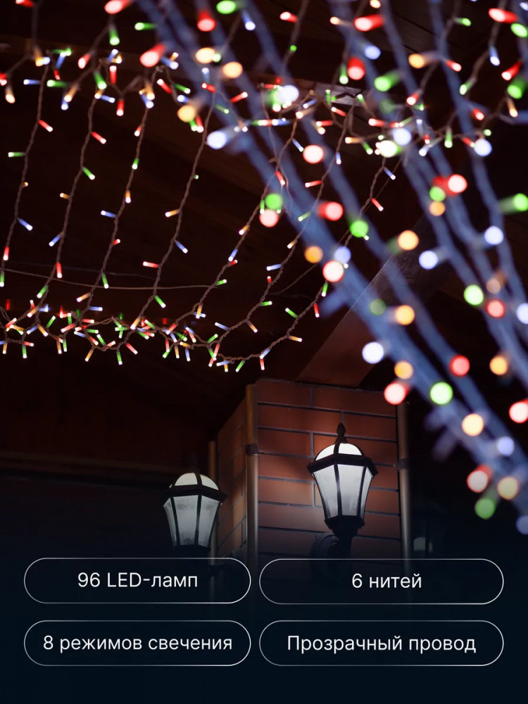 Светодиодная гирлянда занавес для улицы, для украшения дачи, загородного дома, беседки, балкона на Новый год и в любое время года, зимой и летом.