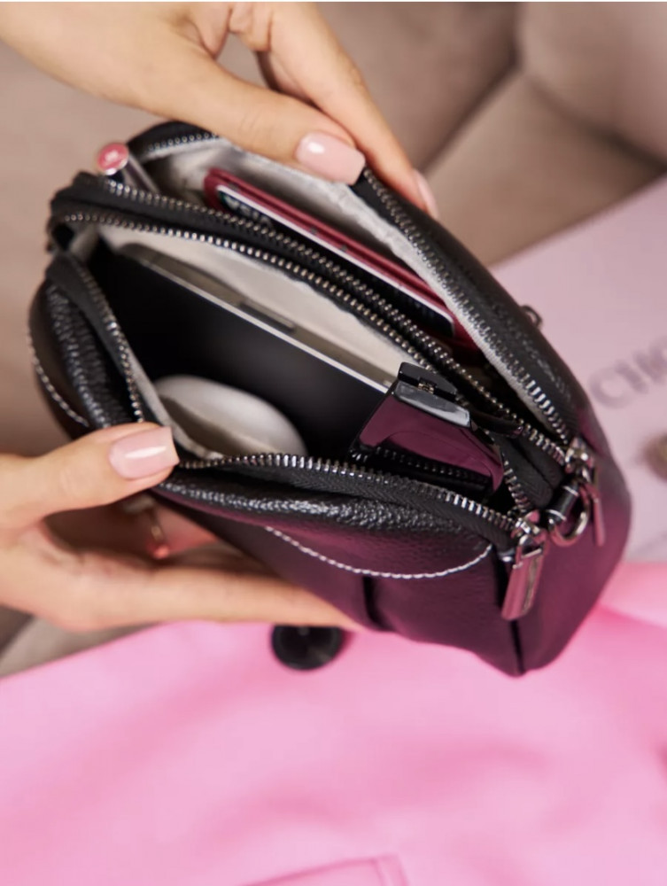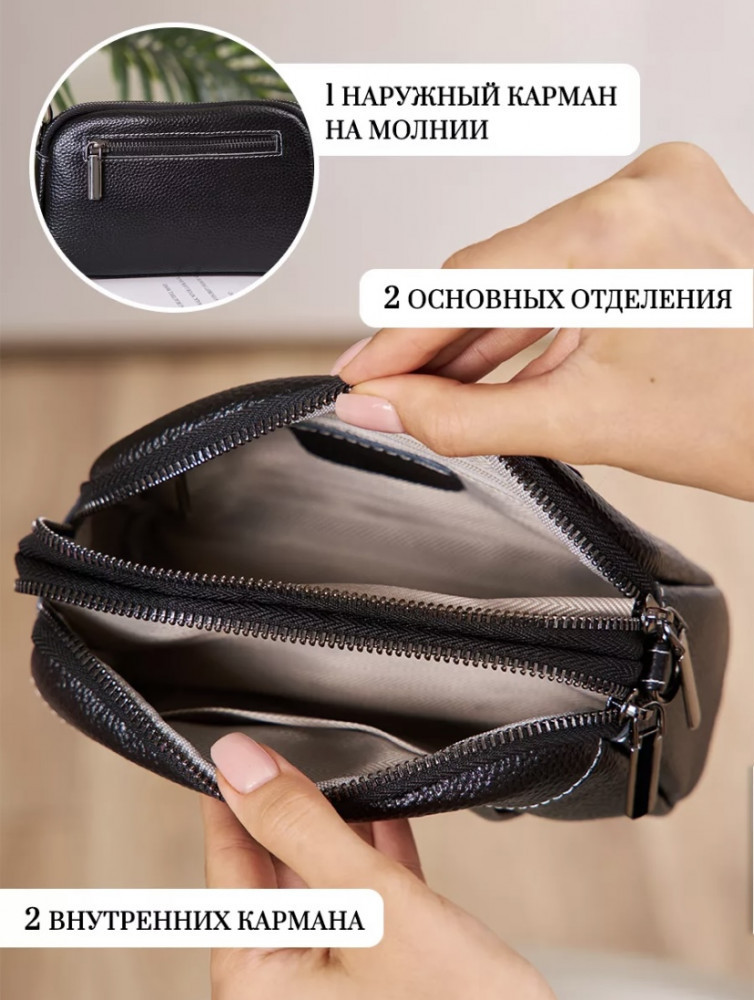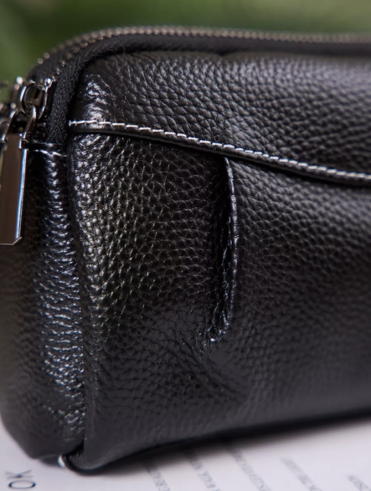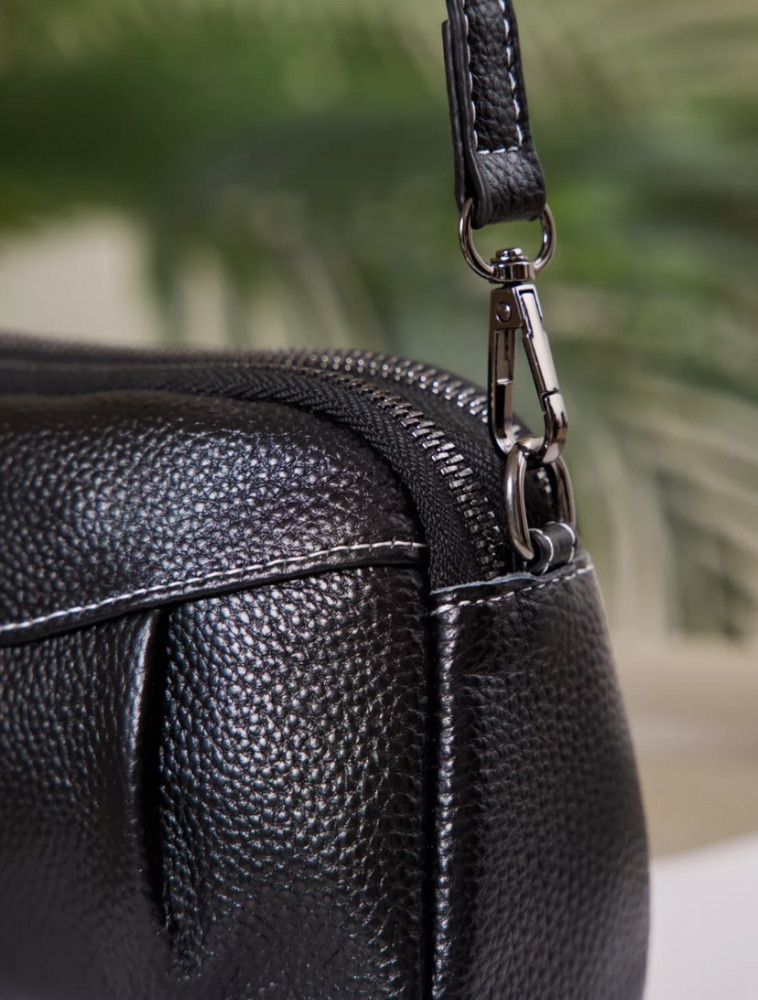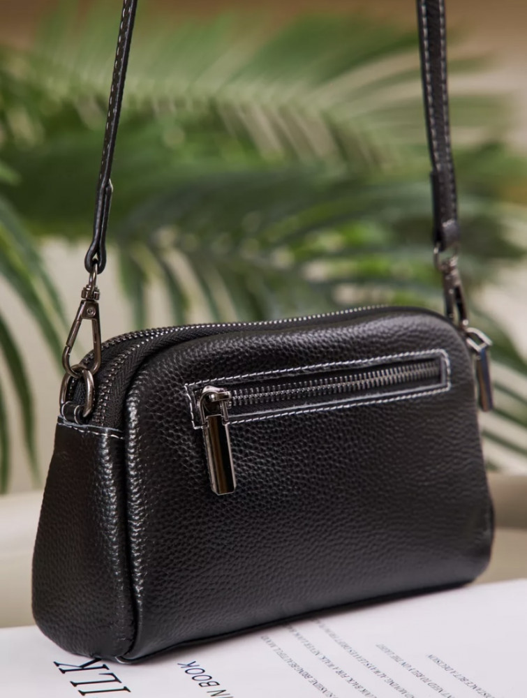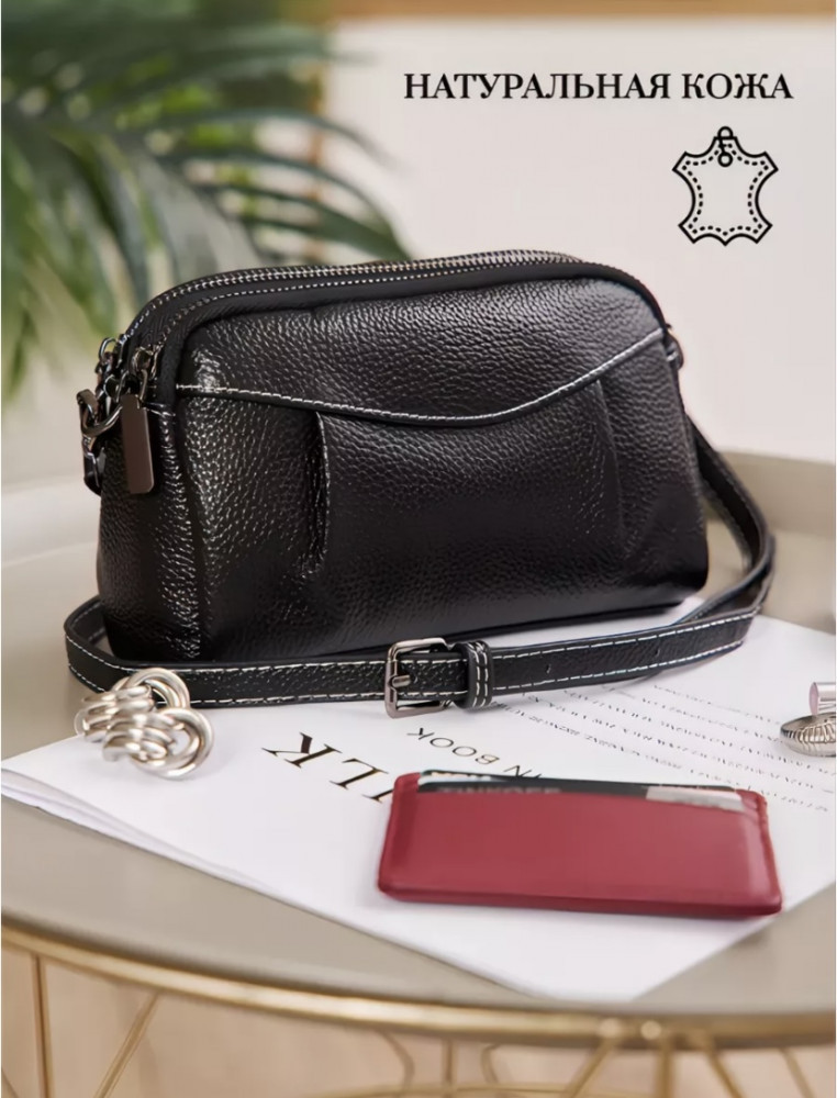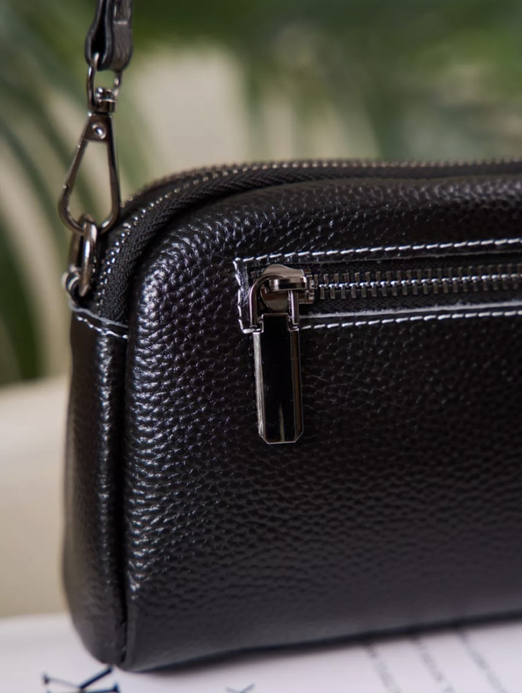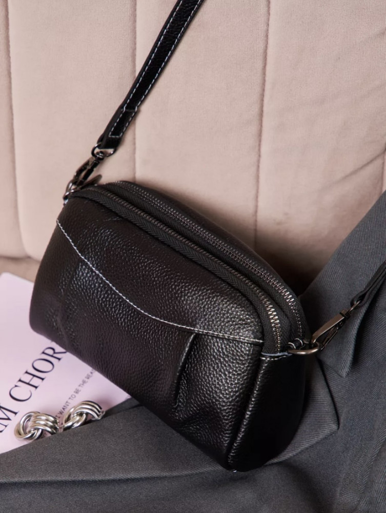 Сумка кожаная через плечо маленькая — идеальный аксессуар для современной женщины, сочетающий в себе стиль, функциональность и качество. Эта сумка выполнена из натуральной кожи с зернистой фактурой, что придает ей уникальный вид и добавляет изысканности. Вид застежки молния обеспечивает легкость открытия и закрытия сумки, а декоративные элементы, такие как молния, складки и вышивка, добавляют ей индивидуальности.