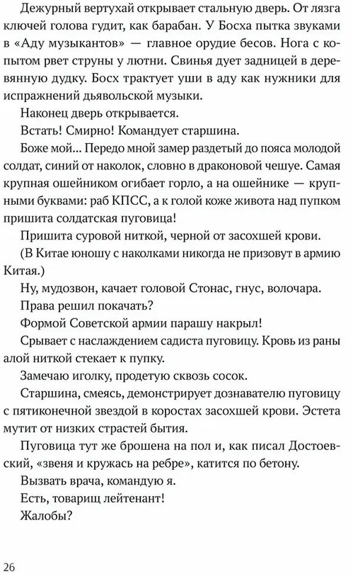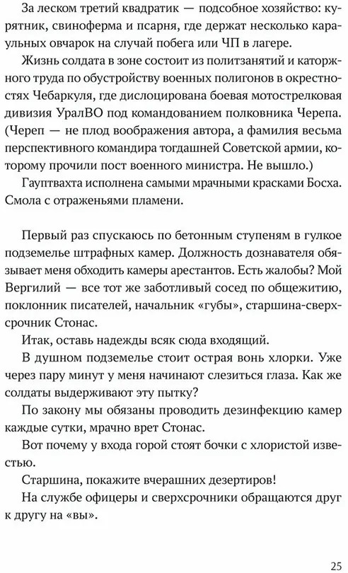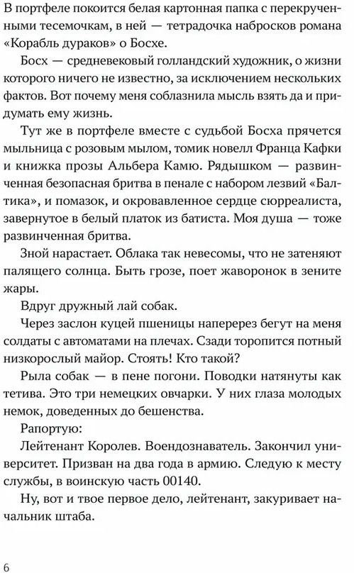 Вчера — выпускник-филолог и молодой офицер. Сегодня — свидетель закрытого политического процесса. Завтра — ссылка на два года в дисциплинарный батальон на Урале, но не заключенным, а следователем. Утром он лейтенант, расследующий самые странные дела, а ночью — пытается разгадать самого таинственного художника Иеронима Босха, становясь соучастником его картин и его жизни. Гротескный, увлекательный, во многом автобиографичный, написанный кровью и смехом роман Анатолия Королева сначала 30 лет ждал своего рождения, а потом еще 20 лет — переиздания. |