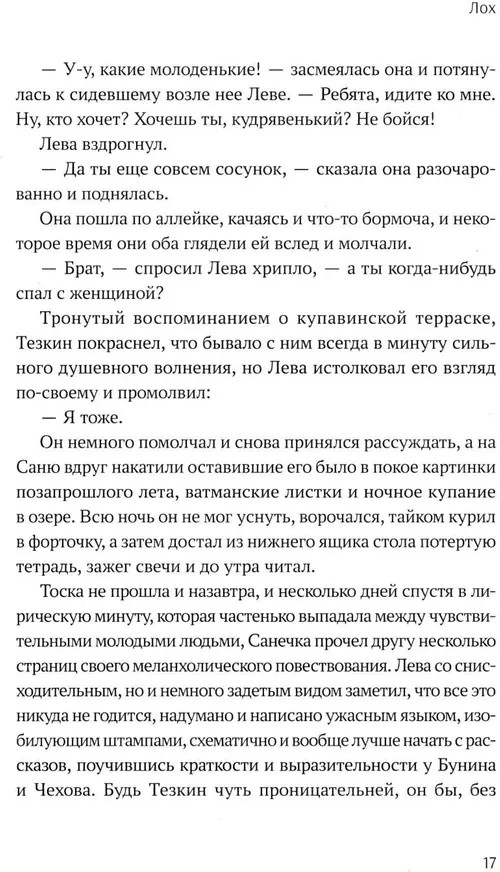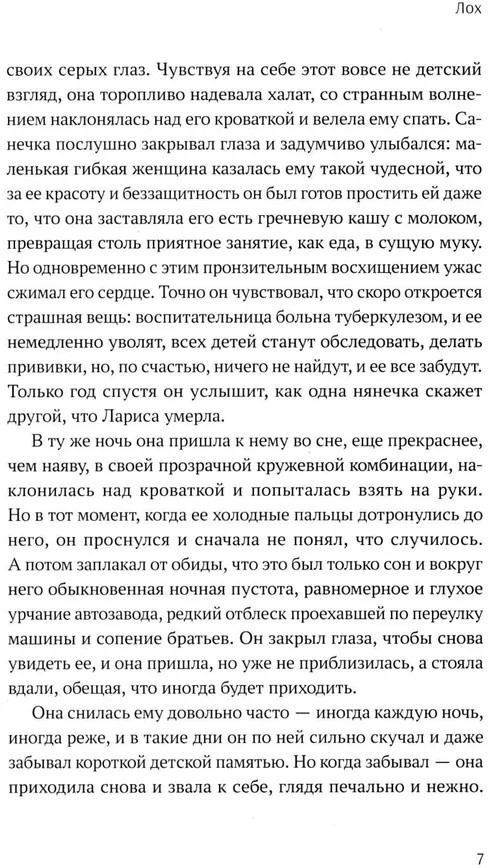 Любой человек хоть раз в жизни задумывался о смысле жизни и своем месте в мире. Таков и главный герой романа Алексея Варламова «Лох» — Александр Тезкин. Он настоящий русский скиталец, стихийный философ, всю жизнь пытающийся найти ответы на самые сложные вопросы бытия, отчего душе его неспокойно, а жизнь складывается не слишком гладко. В ней много ошибок и потерь, обманутых надежд и разочарований, но Тезкин не ломается под гнетом переломных времен и не предает ни себя, ни своих близких. Герои вошедших в книгу повестей — уникальные в своей обыкновенности русские люди с удивительно живыми характерами. Многим из них выпала нелегкая доля. О каждом рассказано с такой нежностью, что не остается сомнений в силе любви автора к русскому народу, который и является истинным хранителем мудрости. Книга не только помогает отдохнуть от суеты современности, но заставляет задуматься над действительно важными вещами. |
